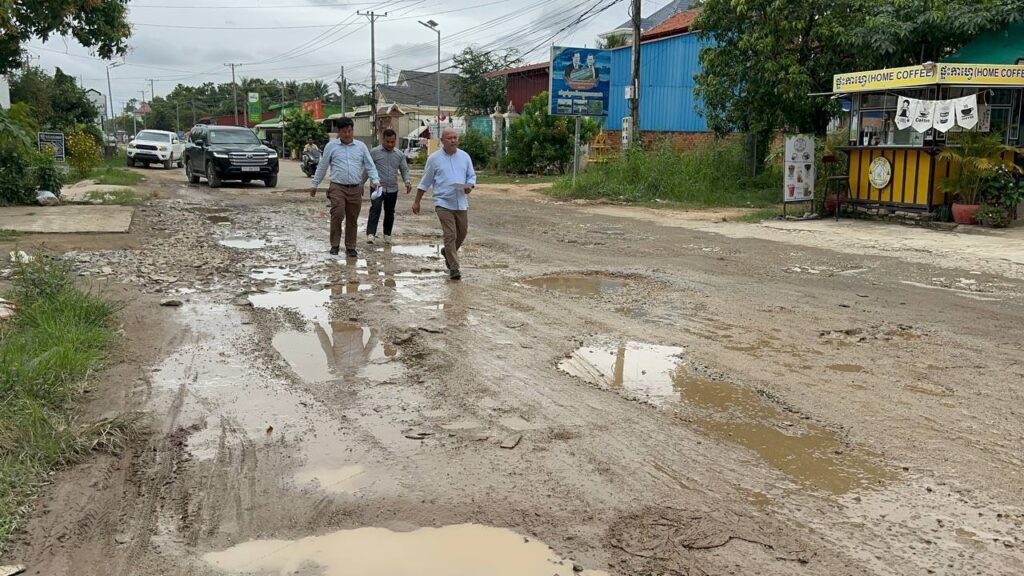 ប្រធានមន្ទីរសាធារណការខេត្តកណ្តាល ដឹកនាំក្រុមការងារបច្ចេកទេស ចុះពិនិត្យស្ថានភាពខូចខាតធ្ងន់ធ្ងរ លើកំណាត់ផ្លូវជាតិលេខ៧០B ដើម្បីជួសជុលជាបន្ទាន់