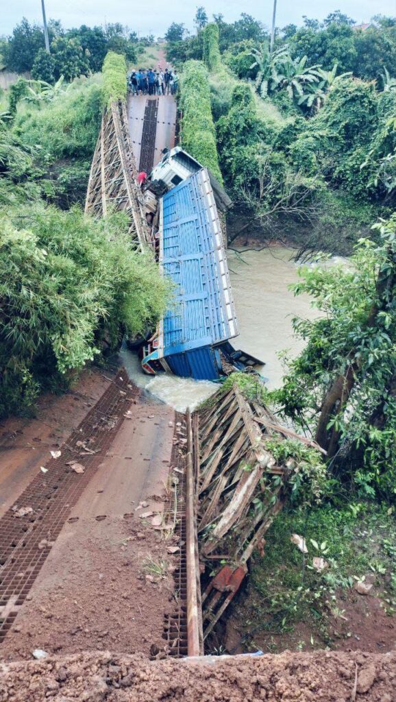 បិទចរាចរយាន យន្តគ្រប់ប្រភេទ ធ្វើដំណើរលើកំណាត់ផ្លូវ ខេត្តលេខ 3KRT24 ក្នុងឃុំគ្រញូងសែនជ័យ ស្រុកស្នួល បន្ទាប់ពីស្ពានអូរឆ្លូង បានបាក់ដោយសារ រថយន្តធុនធំ