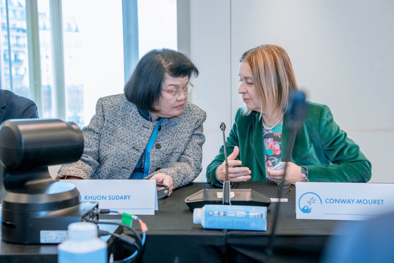 សម្តេច ឃួន សុដារី ប្រធានរដ្ឋសភាកម្ពុជា ក្នុងកិច្ចប្រជុំតុមូល នៃវេទិកាសន្តិភាពប៉ារីសលើកទី៨ បានលើកឡើងពីការឯកភាពរបស់កម្ពុជា-ថៃ លើកិច្ចព្រមព្រៀងសន្តិភាព ដោយមានការជួយសម្របសម្រួលពីប្រទេស ម៉ាឡេស៊ី ដែលជាប្រធានអាស៊ាន និងដោយមានការជួយគាំទ្រ យ៉ាងខ្លាំងពីសហរដ្ឋអាមេរិក ។ ការចុះហត្ថលេខា នៃកិច្ចព្រមព្រៀងសន្តិភាពនេះ បានបិទទំព័រមួយដ៏លំបាក និងបើកនូវសករាជថ្មីមួយ ដែលមិនត្រឹមតែ បញ្ចប់នូវជម្លោះនាពេលបច្ចុប្បន្ន ថែមទាំងបានធ្វើជាមូលដ្ឋានគ្រឹះសម្រាប់ធានាបាននូវសន្តិភាព ដោយដោះស្រាយនូវមូលហេតុនៃជម្លោះ និងបង្កើតលក្ខណ្ឌដ៏ចាំបាច់ សម្រាប់ធានាបាននូវសន្តិភាពយូរអង្វែង សុខុដុមរមនា និងវិបុលភាពរួម ។