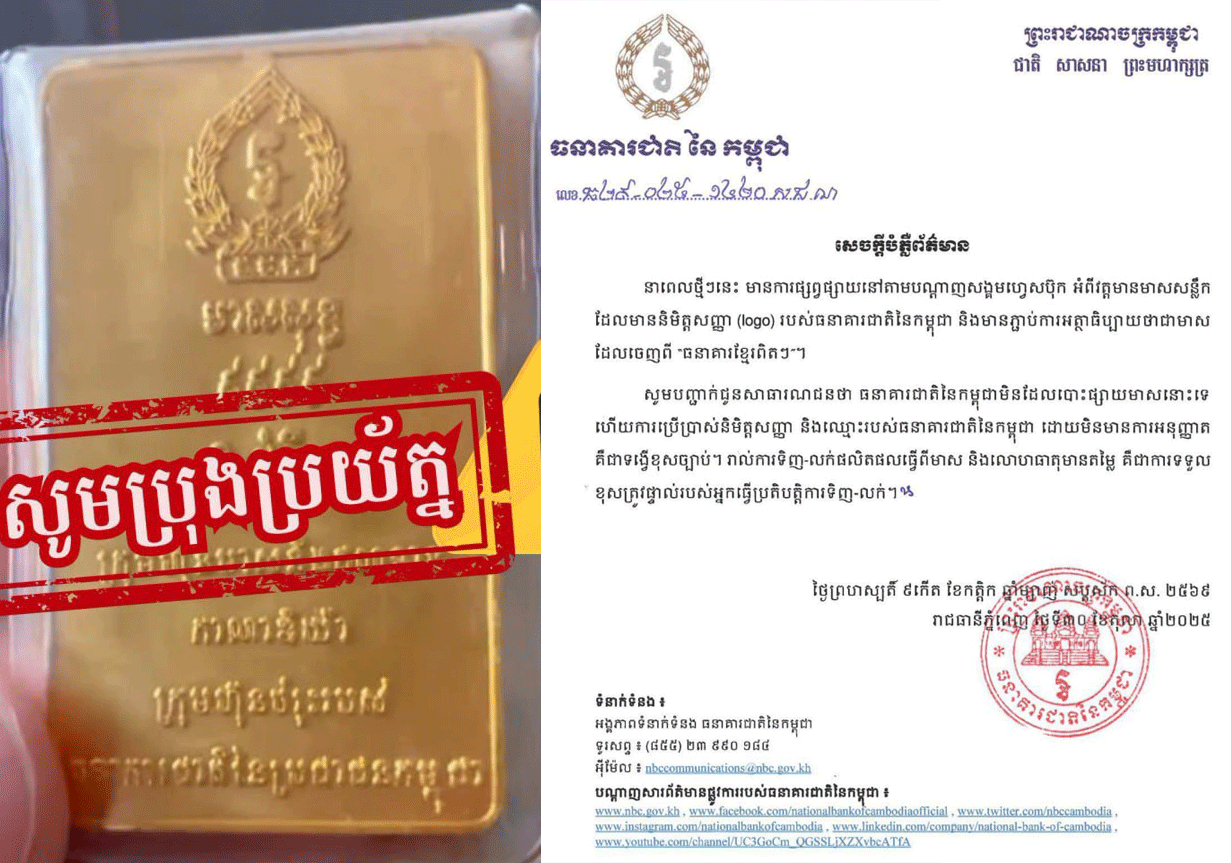ធនាគារជាតិកម្ពុជា មិនដែលបោះផ្សាយមាសទេ