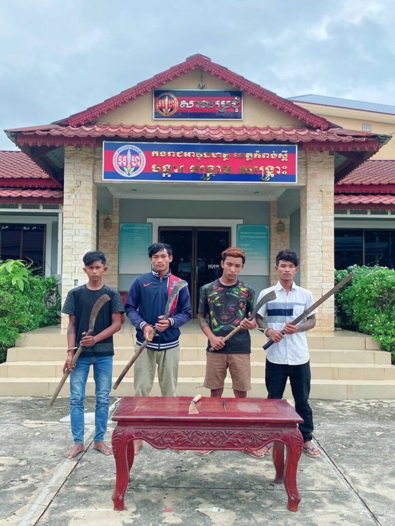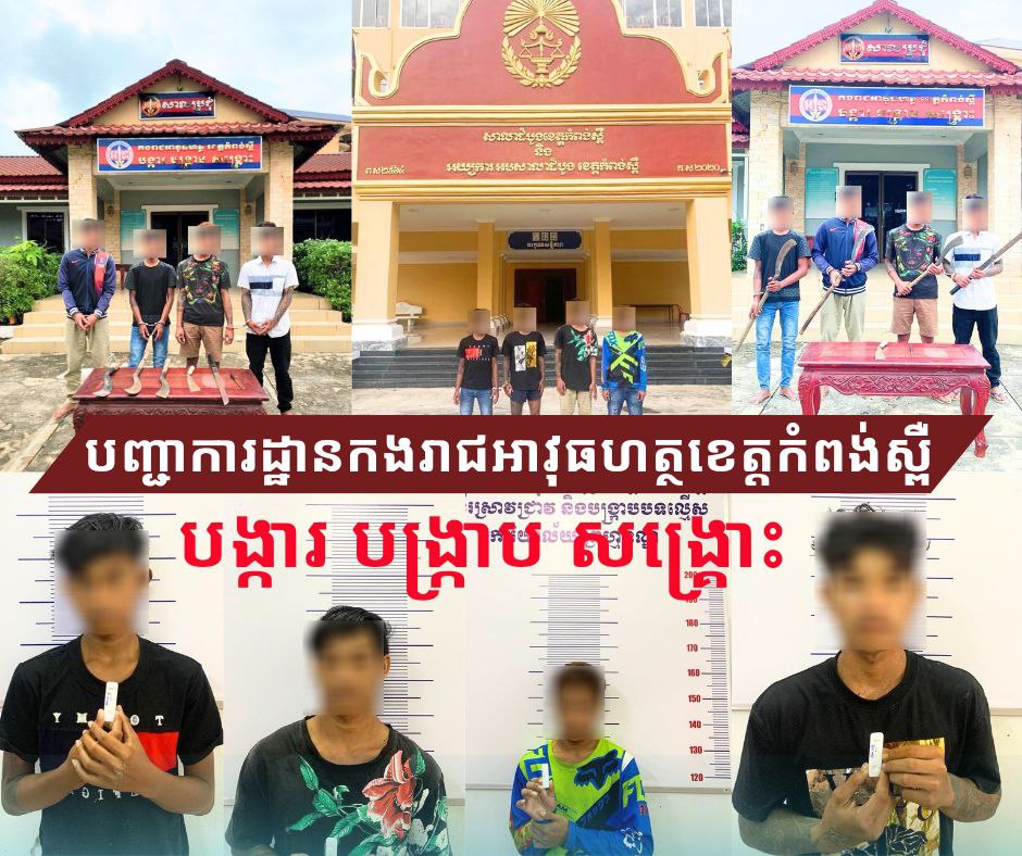 អ្នានកហ៊ានស្បែកដាច់ អ្នកខ្លាចស្បែកគង់!ក្មេងទំនើងមួយក្រុមប្រដាប់ដោយកាំបិតផ្គាក់ ដាវ ដុំឥដ្ឋ ដំបង និងដែកឆាបចុងស្រួច​ បានធ្វើសកម្មភាពដេញកាប់ទៅលើជនរងគ្រោះ​​​ ត្រូវបានកម្លាំងកងរាជអាវុធហត្ថខេត្តកំពង់ស្ពឺ បង្ក្រាប និងឃាត់ខ្លួនបញ្ជូនទៅសាលាដំបូងខេត្តកំពង់ស្ពឺ ជាបន្តបន្ទាប់ហើយ…
