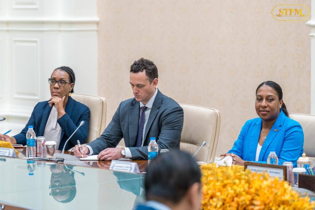 ឆ្លៀតក្នុងឱកាសនោះដែរ, សម្ដេចបវរធិបតី ក៏បានបញ្ជាក់ជូនគណៈប្រតិភូសហរដ្ឋអាមេរិកអំពីការវាយតម្លៃខ្ពស់ និងអរគុណយ៉ាងជ្រាលជ្រៅដល់សហរដ្ឋអាមរិក ជាពិសេស លោកប្រធានាធិបតី Donald J. Trump ដែលខិតខំស្វះស្វែងបង្កើតឱ្យមានកិច្ចព្រមព្រៀងឈប់បាញ់កម្ពុជា-ថៃ នៅថ្ងៃទី២៨ ខែកក្កដា និងសេចក្ដីថ្លែងការណ៍រួមទីក្រុងគូឡាឡាំពួ។
