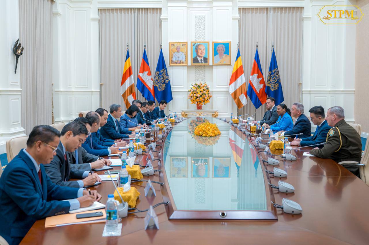 ឆ្លៀតក្នុងឱកាសនោះដែរ, សម្ដេចបវរធិបតី ក៏បានបញ្ជាក់ជូនគណៈប្រតិភូសហរដ្ឋអាមេរិកអំពីការវាយតម្លៃខ្ពស់ និងអរគុណយ៉ាងជ្រាលជ្រៅដល់សហរដ្ឋអាមរិក ជាពិសេស លោកប្រធានាធិបតី Donald J. Trump ដែលខិតខំស្វះស្វែងបង្កើតឱ្យមានកិច្ចព្រមព្រៀងឈប់បាញ់កម្ពុជា-ថៃ នៅថ្ងៃទី២៨ ខែកក្កដា និងសេចក្ដីថ្លែងការណ៍រួមទីក្រុងគូឡាឡាំពួ។
