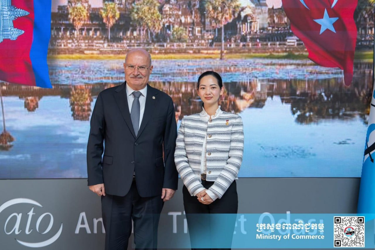 នាថ្ងៃទី៣ ខែវិចិ្ឆកា ឆ្នាំ២០២៥ នៅទីក្រុងអង់ការ៉ា ប្រទេសតួកគីយ៉េ លោកស្រី ចម និម្មល រដ្ឋមន្ត្រីក្រសួងពាណិជ្ជកម្មកម្ពុជា បានជួបពិភាក្សាការងារជាមួយ លោក Gürsel BARAN ប្រធានសភាពាណិជ្ជកម្មអង់ការ៉ា និងសហការី។