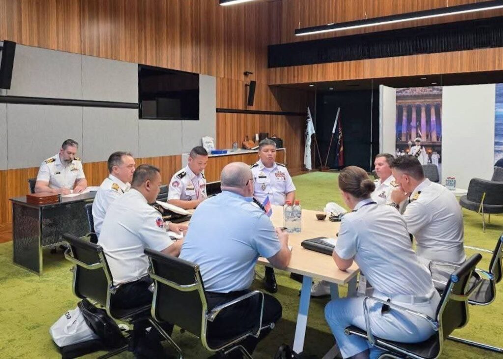 ប្រទេសអូស្ត្រាលី៖ ថ្ងៃពុធ ១៥កើត ខែកត្តិក ឆ្នាំម្សាញ់ សប្តស័ក ព.ស. ២៥៦៩ ត្រូវនិងថ្ងៃទី៥ ខែវិច្ឆិកា ឆ្នាំ២០២៥ឧត្តមនាវីឯក ទៀ សុខា មេបញ្ជាការកងទ័ពជើងទឹក អនុប្រធានប្រចាំការ និងជាអគ្គលេខាធិការ នៃគណៈកម្មាធិការជាតិសន្តិសុខលម្ហសមុទ្រ អញ្ជើញចូលជំនួបទ្វេភាគី ជាមួយឯកឧត្តម មេបញ្ជាការកងទ័ពជើងទឹកអូស្ត្រាលី នៅទីក្រុងសុីដនី ប្រទេសអូស្ត្រាលី៕