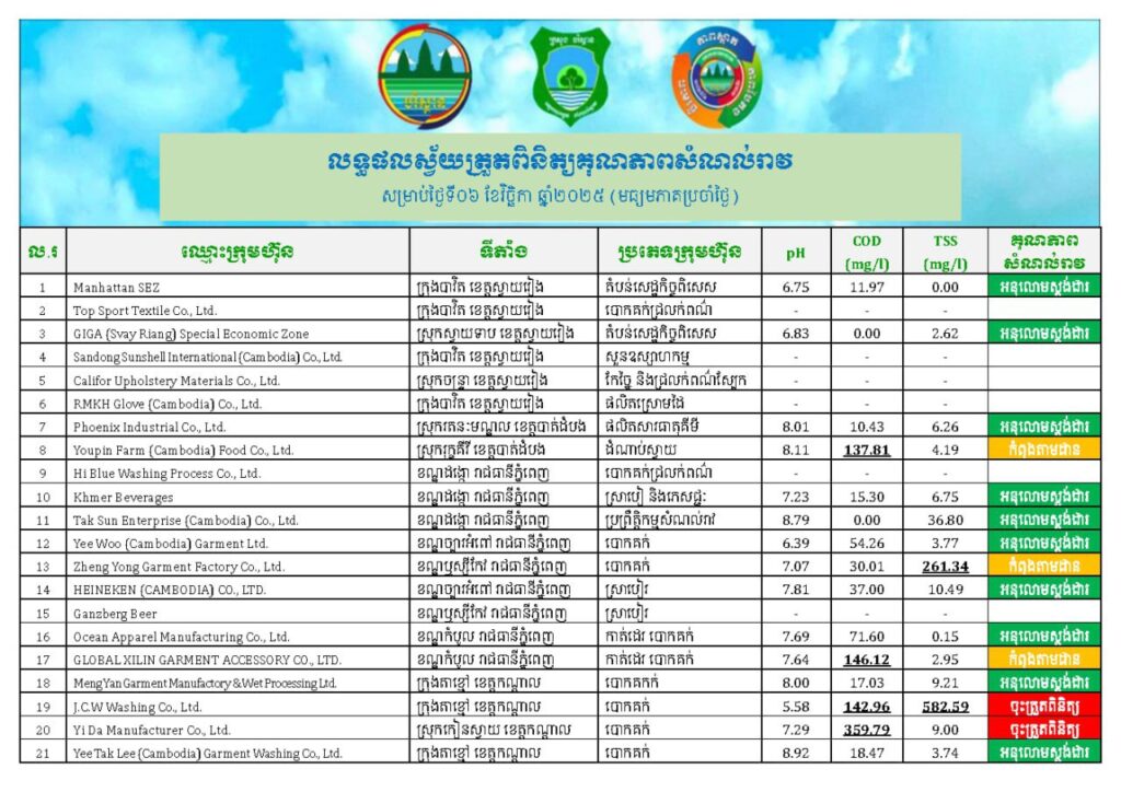 ដោយឡែកគ្រាន់តែក្នុងខែតុលា ឆ្នាំ២០២៥ ក្រសួងបរិស្ថានបានទប់ស្កាត់ការបញ្ចេញសំណល់រាវមិនឱ្យមានការបំពុលបរិស្ថាន បានចំនួនប្រមាណ២លានម៉ែត្រគូប។