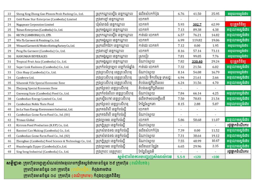 សូមបញ្ជាក់ថា គិតត្រឹមខែតុលា ឆ្នាំ២០២៥នេះដែរ រោងចក្រ សហគ្រាស និងក្រុមហ៊ុនចំនួ៦១ ទីតាំង បានចុះកិច្ចសន្យា ក្នុងនោះមាន៤៨ទីតាំង បានបំពាក់ឧបករណ៍ស្វ័យត្រួតពិនិត្យ និងប្រព័ន្ធគ្រប់គ្រងទិន្នន័យការបញ្ចេញសំណល់រាវ នៅតាមទីតាំងរៀងៗខ្លួន៕