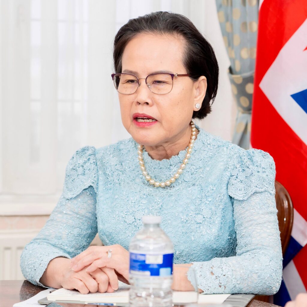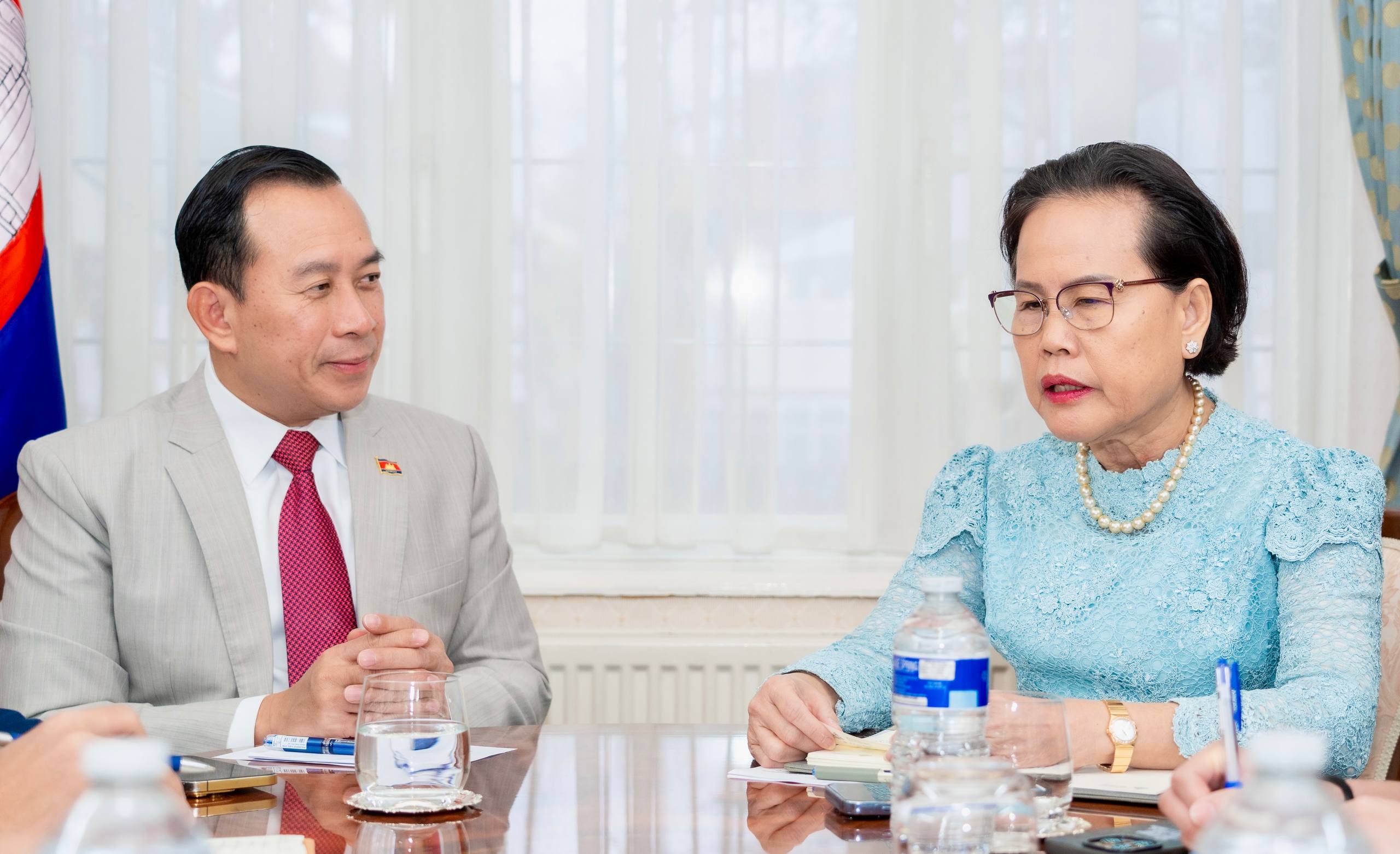 ក្នុងឱកាសនៃជំនួបនោះ លោករដ្ឋមន្ត្រី បានផ្តាំផ្ញើ និងការសាកសួរសុខទុក្ខ ពីសំណាក់សម្តេចទាំងពីរ គឺសម្តេចតេជោ និងសម្តេចធិបតី ដល់លោកស្រី ឯកអគ្គរាជទូត និងសហការីទាំងអស់។