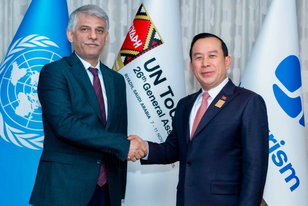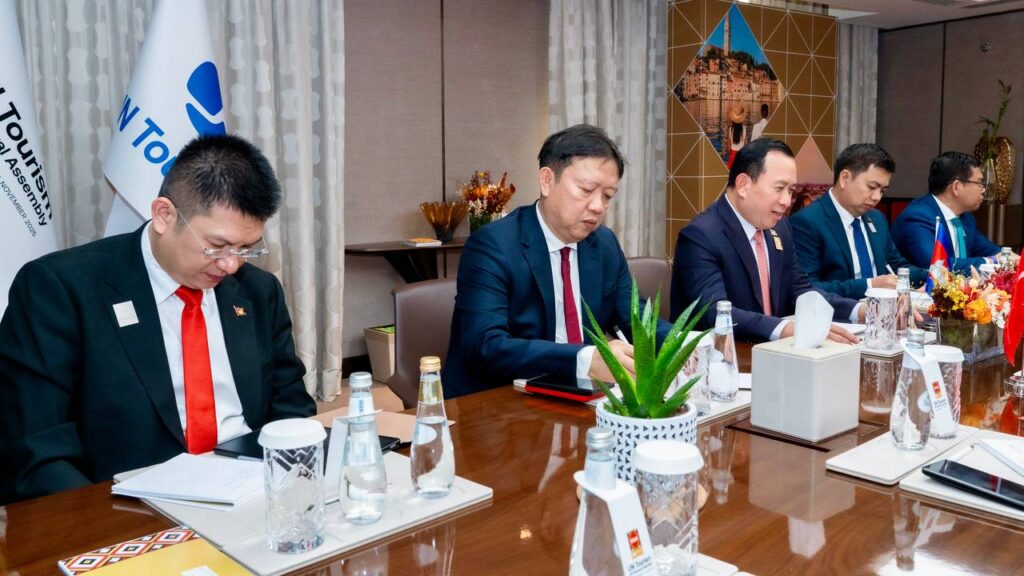 នាឱកាសដឹកនាំគណៈប្រតិភូជាន់ខ្ពស់ក្រសួងទេសចរណ៍ ចូលរួមមហាសន្និបាតអង្គការទេសចរណ៍ សហប្រជាជាតិ លើកទី២៦ (UN Tourism- 26th General Assembly) នៅរាជធានីរីយ៉ាដ កាលពីថ្ងៃទី១០ ខែវិច្ឆិកា ឆ្នាំ២០២៥ លោក ហួត ហាក់ រដ្ឋមន្រ្តីក្រសួងទេសចរណ៍ បានទទួលជួបពិភាក្សាការងារ និង ផ្លាស់ប្តូរយោបល់ស៊ីជម្រៅ ជាមួយលោក Nadir Alpaslan អនុរដ្ឋមន្រ្តីវប្បធម៌ និងទេសចរណ៍តួកគីយ៉េ ស្តីពីការអនុវត្តអនុស្សរណៈ នៃការយោគយល់គ្នា លើកិច្ចសហប្រតិបត្តិការ ទេសចរណ៍ រវាងប្រទេសទាំងពីរ ដែលបានចុះកន្លងមក ឱ្យកាន់តែជាក់ស្តែង និងប្រកបដោយ ប្រសិទ្ធិភាព និងប្រសិទ្ធិផលខ្ពស់ តាមរយៈការបង្កើត ក្រុមការងារបច្ចេកទេស ផែនការសកម្មភាព និងព្រឹត្តិការណ៍ជំរុញ ទេសចរណ៍ជាដើម ដើម្បីបង្កើនកំណើនភ្ញៀវ ទេសចរជាតិ និងអន្តរជាតិ ព្រមទាំងសន្ទុះវិនិយោគ លើវិស័យទេសចរណ៍ រវាងប្រទេសទាំងពីរ ស្របពេលដែលមានការតភ្ជាប់តាមផ្លូវអាកាស នាពេលខាងមុខ រវាងទីក្រុងអ៊ីស្តាន់ប៊ុល និងរាជធានីភ្នំពេញ ដោយក្រុមហ៊ុនអាកាសចរណ៍ Turkish Airlines ៕