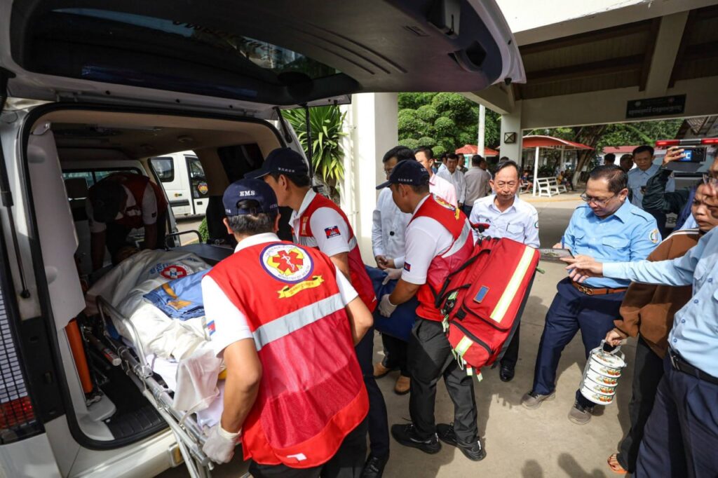 ភ្នំពេញ ៖ ជនស៊ីវិលកម្ពុជា៣នាក់ ដែលបានរងរបួសធ្ងន់ស្រាល ដោយសារយោធាថៃ បាញ់ប្រហារនៅភូមិព្រៃចាន់ ឃុំអូរបីជាន់ ស្រុកអូរជ្រៅ ខេត្តបន្ទាយមានជ័យ កំពុងត្រូវបានបញ្ជូនចេញពីមន្ទីរពេទ្យ ខេត្តមិត្តភាពកម្ពុជា-ជប៉ុន មង្គលបូរី ខេត្តបន្ទាយមានជ័យ មកកាន់មន្ទីរពេទ្យនៅរាជធានីភ្នំពេញ ដើម្បីបន្តការព្យាបាល ។ នេះបើតាមការចេញផ្សាយរបស់AKP ៕