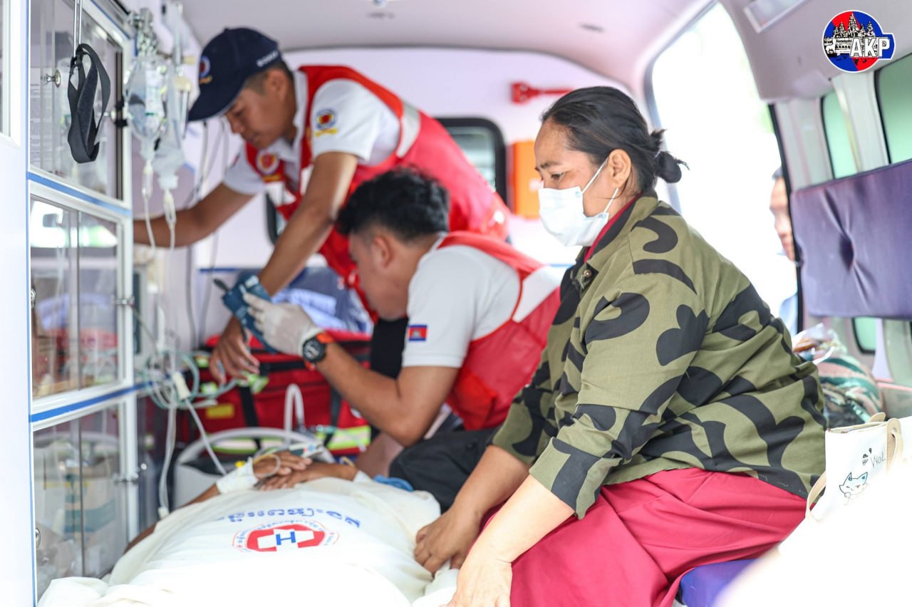 ភ្នំពេញ ៖ ជនស៊ីវិលកម្ពុជា៣នាក់ ដែលបានរងរបួសធ្ងន់ស្រាល ដោយសារយោធាថៃ បាញ់ប្រហារនៅភូមិព្រៃចាន់ ឃុំអូរបីជាន់ ស្រុកអូរជ្រៅ ខេត្តបន្ទាយមានជ័យ កំពុងត្រូវបានបញ្ជូនចេញពីមន្ទីរពេទ្យ ខេត្តមិត្តភាពកម្ពុជា-ជប៉ុន មង្គលបូរី ខេត្តបន្ទាយមានជ័យ មកកាន់មន្ទីរពេទ្យនៅរាជធានីភ្នំពេញ ដើម្បីបន្តការព្យាបាល ។ នេះបើតាមការចេញផ្សាយរបស់AKP ៕