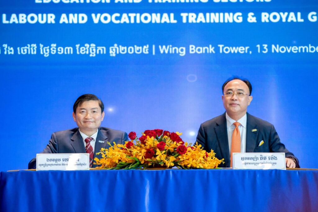 ភ្នំពេញ៖ នាថ្ងៃទី១៣ ខែវិច្ឆិកា ឆ្នាំ២០២៥ លោក ហេង សួរ រដ្ឋមន្ត្រីក្រសួងការងារ និងបណ្ដុះបណ្ដាលវិជ្ជាជីវៈ និងអ្នកឧកញ៉ា គិត ម៉េង ប្រធានក្រុមប្រឹក្សាភិបាល និង ជាអគ្គនាយកប្រតិបត្តិក្រុមហ៊ុន រ៉ូយ៉ាល់គ្រុប បានអញ្ជើញ ជាអធិបតីដ៏ខ្ពង់ខ្ពស់ និង ជាហត្ថលេខី ក្នុងពិធីចុះអនុស្សរណៈ នៃការយោគយល់គ្នា ស្តីពីកិច្ចសហប្រតិបត្តិការ លើវិស័យការងារ សន្តិសុខ សង្គម និងបណ្តុះបណ្តាលវិជ្ជាជីវៈ អមដោយវត្តមាន ចូលរួមលោកជំទាវ អ្នកឧកញ៉ា ម៉ៅ ចំណាន គិត ម៉េង អនុប្រធានក្រុមប្រឹក្សាភិបាលក្រុមហ៊ុន រ៉ូយ៉ាល់គ្រុប និងជាប្រធានសមាគមសិល្បករខ្មែរ នៅអគារវីងថៅវើ ដើម្បីបង្កើតភាពជាដៃគូរវាងរដ្ឋ និងឯកជន ដែលផ្ដោតលើការពង្រឹង ការអភិវឌ្ឍកម្លាំងពលកម្មនៅកម្ពុជា លើកកម្ពស់ ឱកាសការងារ លើកកម្ពស់បរិយាបន្នហិរញ្ញវត្ថុ និងការទូទាត់ប្រាក់តាមប្រព័ន្ធឌីជីថល និងជំរុញកិច្ច សហការយ៉ាងមានប្រសិទ្ធភាពរវាងភាគីទាំងពីរ។