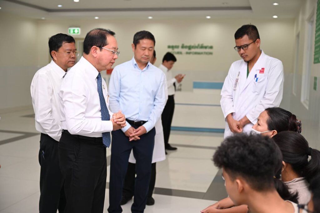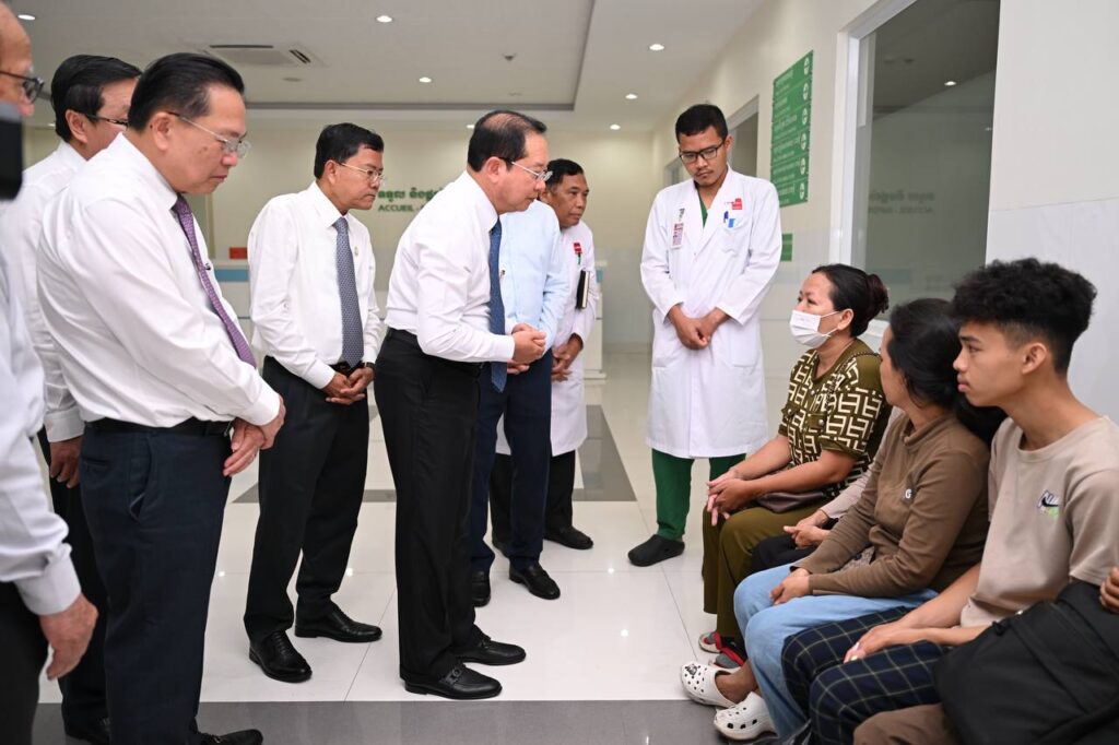 ក្នុងឱកាសចុះពិនិត្យ និងសាកសួរសុខទុក្ខ សាស្រ្តាចារ្យរដ្ឋមន្រ្តី បានប្រជុំការងារបច្ចេកទេសវេជ្ជសាស្រ្តកម្រិតឯកទេស ជាមួយគ្រូពេទ្យពហុជំនាញពាក់ព័ន្ធ ពិនិត្យបន្ថែមលក្ខណៈស៊ីជម្រៅ និងលម្អិតលើករណីជំងឺនីមួយៗ ដើម្បីពិនិត្យ និងបញ្ជាក់បន្ថែមលើភាពច្បាសលាស់នៃការធ្វើរោគវិនិច្ឆ័យ និងវិធីសាស្រ្ត នៃការព្យាបាល និងជំហានបន្ទាប់ សំដៅគោលការណ៍សុវត្ថិភាព និប្រសិទ្ធភាពខ្ពស់បំផុត។