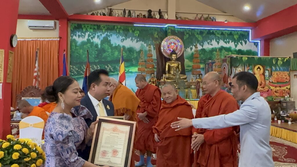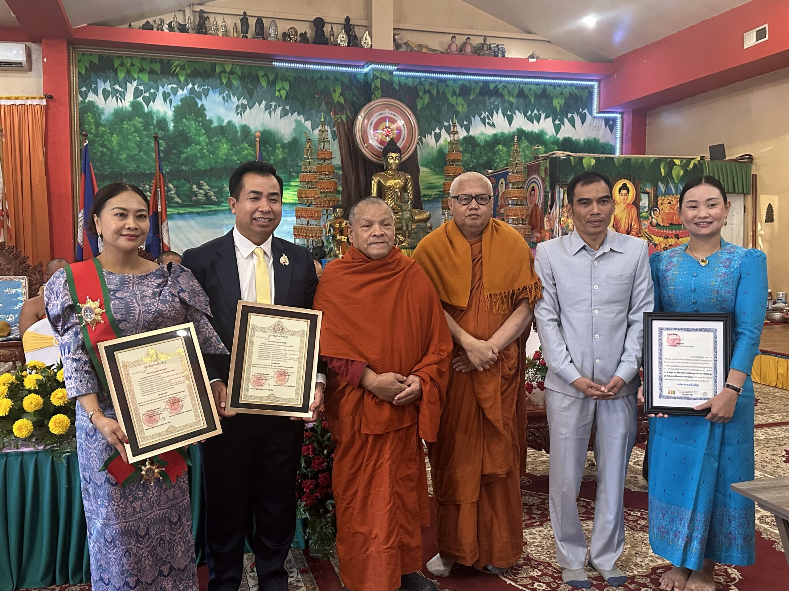 លោក នាក់ សំបូរ ប្រគល់ប្រកាសនីយប័ត្រ ទទួលស្គាល់ពលរដ្ឋខ្មែរអាមេរិកាំង ជាមហាបឧបាសក ពុទ្ធសាសនូបត្ថម្ភក៍