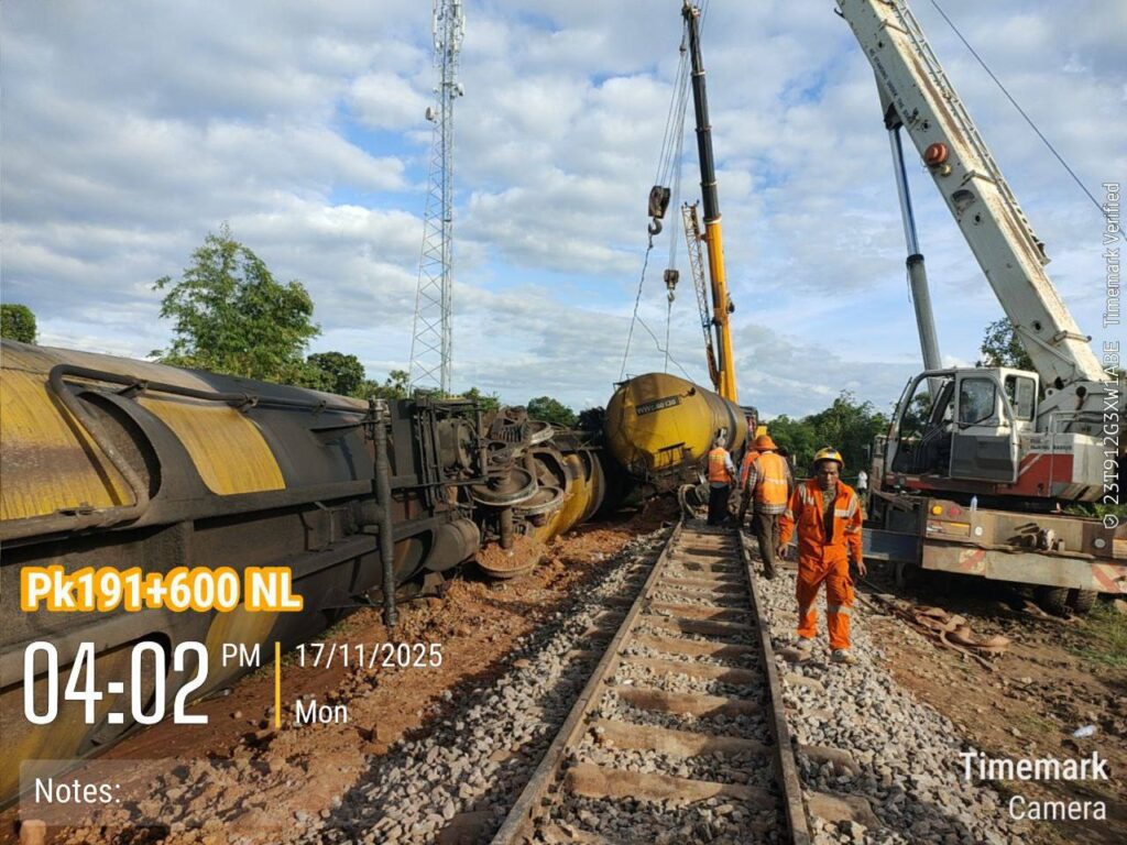 ភ្នំពេញ ៖ អ្នកនាំពាក្យក្រសួងសាធារណការ និងដឹកជញ្ជូន លោក ផន រឹម បានឱ្យដឹងថា ករណីស្រុកផ្លូវរថភ្លើង បណ្តាលឱ្យទូររថភ្លើងចំនួន៣ទូរ បានក្រឡាប់ធ្លាយប្រេងចេញមកក្រៅ នៅចំណុច PK191+600 ខ្សែដែកទិសខាងជើង ស្ថិតនៅភូមិដើមច្រេស ឃុំបឹងខ្នារ ស្រុកបាកាន ខេត្តពោធិ៍សាត់ កាលពីថ្ងៃ១៧ វិច្ឆិកា មិនមែនជាប្រេងដឹកចេញមកពីថៃនោះទេ ។