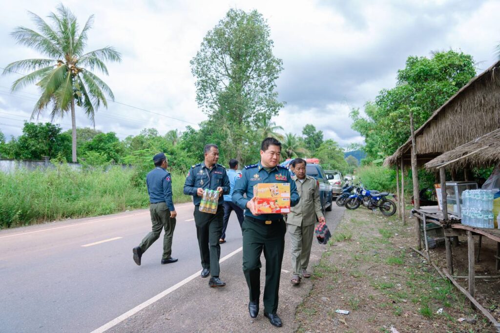 ក្នុងពេលនោះដែរ លោកវរសេនីយ៍ឯក ភូ ឌីសាឌីន រួមជាមួយនិងក្រុមការងារក៏បានពាំនាំនូវផ្តាំផ្ងើរសួរសុខទុក្ខនិងចូលរួមសោកស្តយផងដែរនូវករណីគ្រោះចង្រៃនេះ ពីលោកឧត្តមសេនីយ៍ត្រី ម៉េង ស្រ៊ុន មេបញ្ជាការ ព្រមទាំងបានប្រគល់នូវអំណោយដ៏ថ្លៃថ្លាដែលជាទឹកចិត្តសប្បុរសធម៏រួមមាន÷ថវិកា ចំនួន២០០,០០០រៀល,អង្ក ២បាវ,មីខ្លាឃ្មុំ ២កេស,ទឹកសុទ្ធ ២កេស,ទឹកស៉ីអ៉ីវ ២យួរ,ទឹកត្រី ២យួរនិងត្រីខ ២យួរថែមទៀតផង។