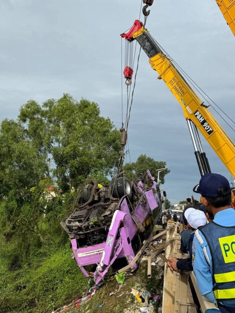 រថយន្តក្រុង២ជាន់ បើកធ្លាក់ចូលទឹក បង្កឲ្យស្លាប់១៣នាក់