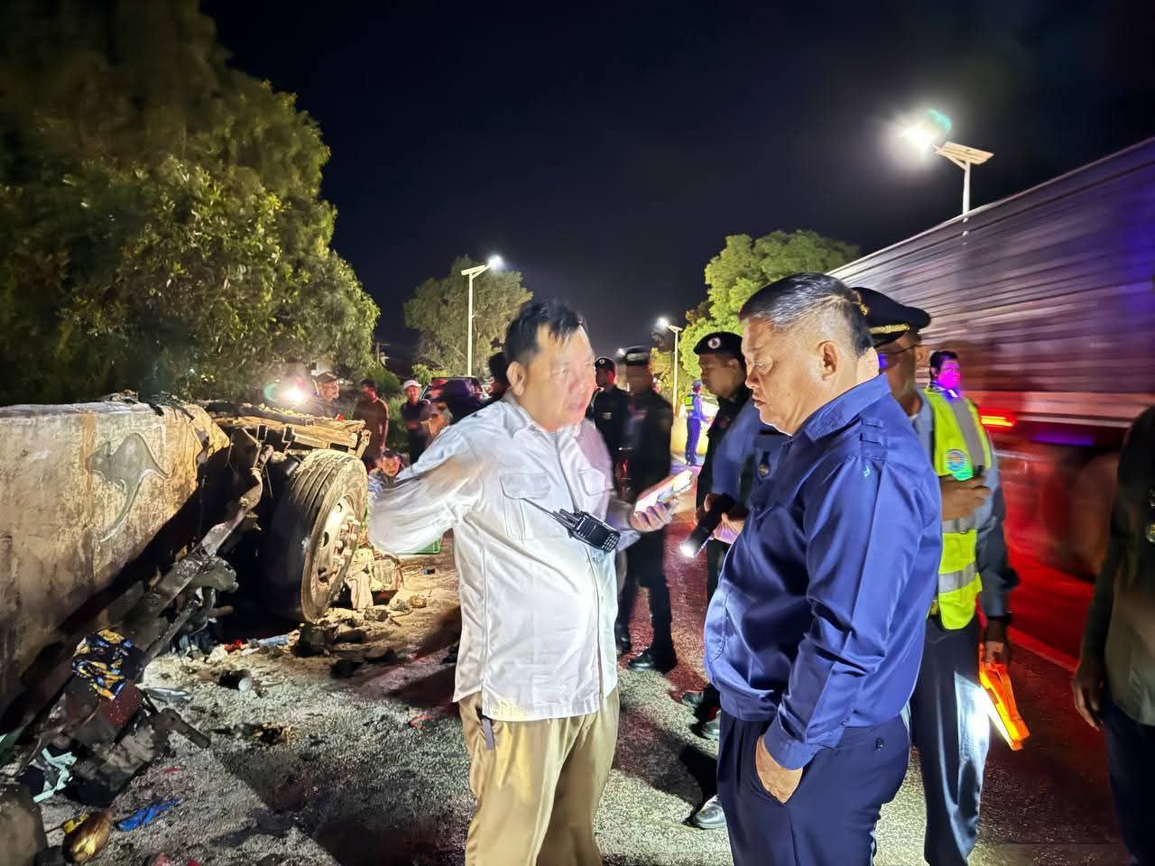 ភ្នំពេញ ៖ រថយន្តក្រុងធុនធំមួយគ្រឿងមាន២ជាន់ បានបើកបុកបង្កាន់ដៃស្ពានអូរប្រាសាទ ស្ថិតនៅឃុំកកោះ ស្រុកសន្ទុក ខេត្តកំពង់ធំ ធ្លាក់ចូលក្នុងទឹកបង្កអ្នកធ្វើដំណើរស្លាប់១៣នាក់ និងរបួស២៤នាក់ ក្នុងចំណោមអ្នកធ្វើដំណើរសរុប៣៧នាក់ ។