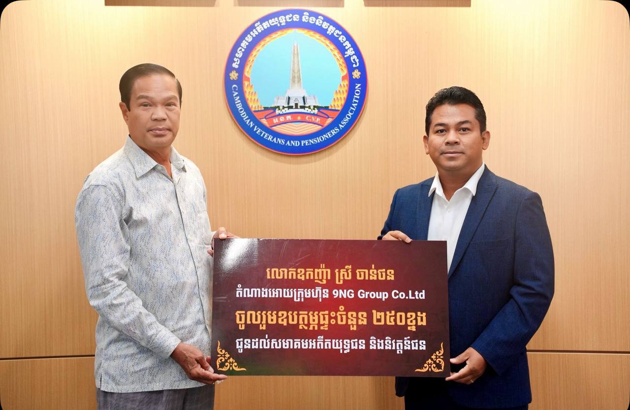 លោកឧកញ៉ា ស្រី ចាន់ថន ទីប្រឹក្សាសម្ដេចអគ្គមហាសេនាបតីតេជោហ៊ុនសែន និងតំណាងឲ្យក្រុមហ៊ុន 9NG Group Co.Ltd បានគល់ថវិកាឧបត្ថម្ភសាងសង់ផ្ទះ ដល់សមាគមអតីតយុទ្ធជន និងនិវត្តជនកម្ពុជាចំនួន ២៥០ ខ្នងរយៈពេល៥ ឆ្នាំ