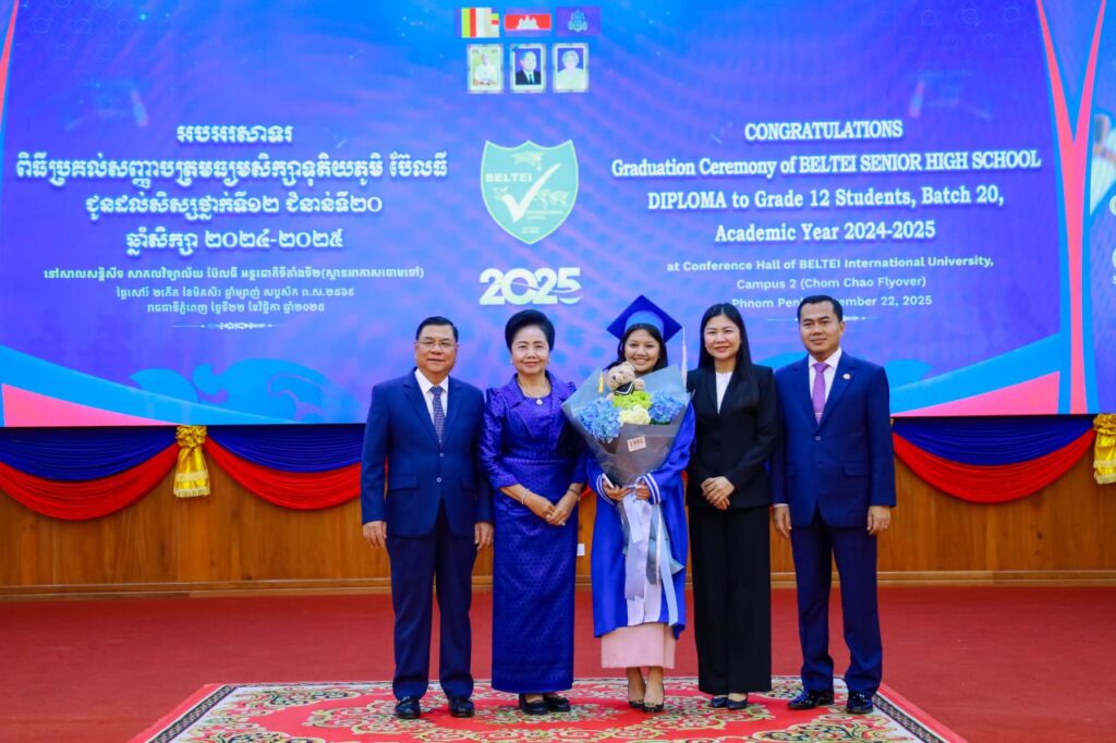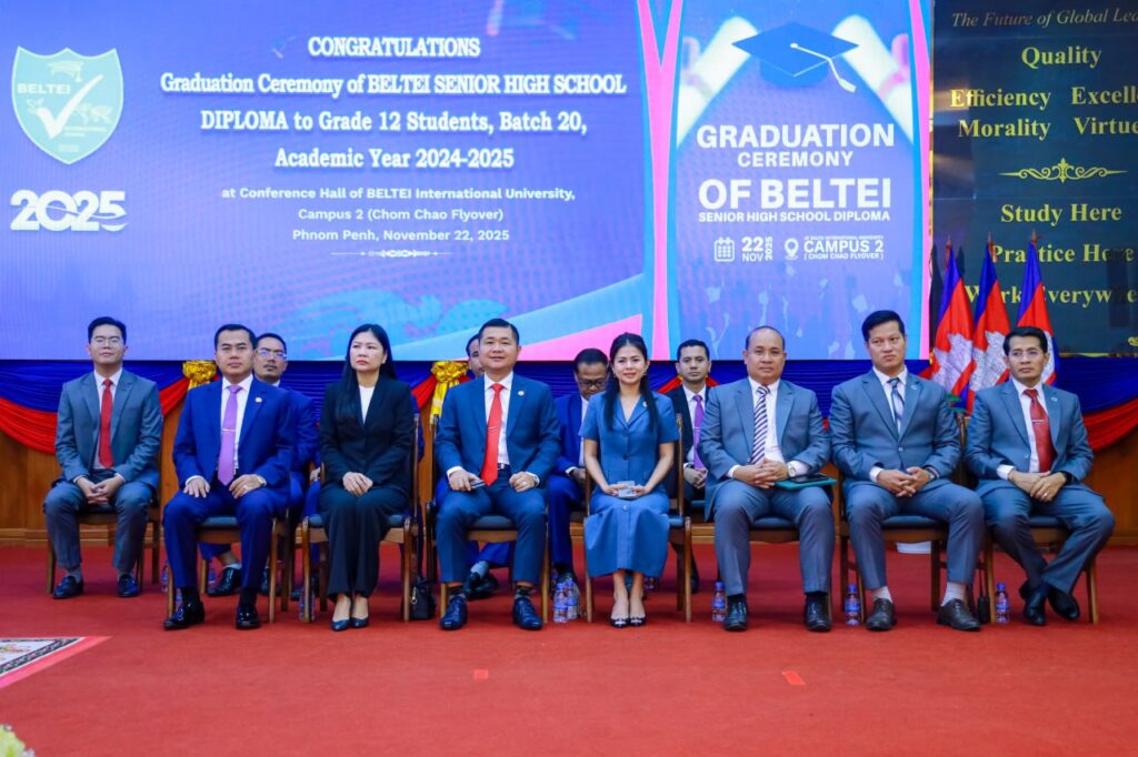 ភ្នំពេញ ៖ នាព្រឹកថ្ងៃទី២២ ខែវិច្ឆិកា ឆ្នាំ២០២៥ សាលា ប៊ែលធី អន្តរជាតិ បានប្រារព្ធពិធីប្រគល់សញ្ញាបត្រ មធ្យមសិក្សា ទុតិយភូមិប៊ែលធី ជូនដល់សិស្សប៊ែលធីថ្នាក់ទី១២ ជំនាន់ទី២០ ដែលបានប្រឡងជាប់សញ្ញាបត្រមធ្យមសិក្សាទុតិយភូមិ (បាក់ឌុប) ក្នុងឆ្នាំសិក្សា ២០២៤-២០២៥ ចំនួន ២,៦៨០នាក់ នៅសាលសន្និសីទនៃសាកលវិទ្យាល័យ ប៊ែលធី អន្តរជាតិ ទីតាំងទី២ (ស្ពានអាកាសចោមចៅ) ក្រោមអធិបតីភាពដ៏ខ្ពង់ខ្ពស់ លោកបណ្ឌិត លី ឆេង តំណាងរាស្រ្ត មណ្ឌលរាជធានីភ្នំពេញ ស្ថាបនិក និងជាអគ្គនាយក ប៊ែលធី គ្រុប និង លោកស្រី ។