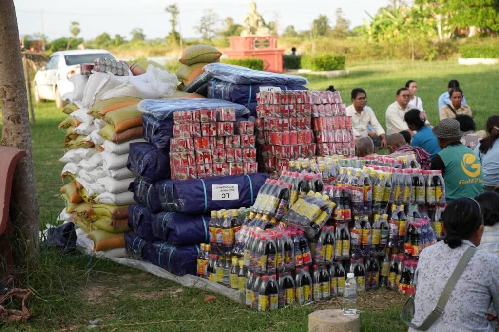 សូមបញ្ជាក់ផងដែរថា បងប្អូនពុកម៉ែប្រជាពលរដ្ឋទាំង១២១គ្រួសារ ដែលទទួលអំណោយនាថ្ងៃនេះ ដោយក្នុងមួយគ្រួសារៗទទួលបាន អង្ករមួយបេ, ទឹកត្រី០១យួរ ឬទឹកស៊ីអ៉ីវ០១យួរ, ត្រីខ០១ឡូតិ៍ និងតង់ខៀវមួយ៕