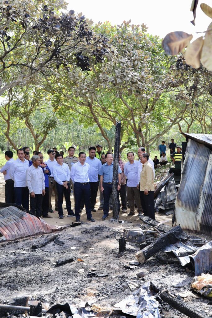 កំពង់ចាម៖ លោក អ៊ុន ចាន់ដា អភិបាល នៃគណៈអភិបាលខេត្តកំពង់ចាម នាព្រឹកថ្ងៃទី២៤ ខែវិច្ឆិកា ឆ្នាំ២០២៥ រួមដំណើរដោយថ្នាក់ដឹកនាំ និងមន្ត្រីរាជការ នៃរដ្ឋបាលខេត្ត កងកម្លំាងមានសមត្ថកិច្ច អាជ្ញាធរមូលដ្ឋាន និងលោកអគ្គនាយកក្រុមហ៊ុន ហេង ឡុង (ចំការកៅស៊ូបឹងកេត) បានអញ្ជើញចូលរួមរំលែកទុក្ខដល់គ្រួសារព រងគ្រោះដោយអំពើឃាតកម្មដ៏សាហាវយង់ឃ្នង ដែលបានកេីតឡេីងលេីប្រជាពលរដ្ឋ និងកុមារ បណ្តាលអោយបាត់បង់ជីវិតមនុស្ស ចំនួន ៩នាក់ ស្ថិតក្នុងភូមិពោន ឃុំទួលសំបួរ ស្រុកស្ទឹងត្រង់ ខេត្តកំពង់ចាម កាលពីព្រឹកព្រលឹមថ្ងៃទី២៣ ខែវិច្ឆិកា ឆ្នាំ២០២៥។