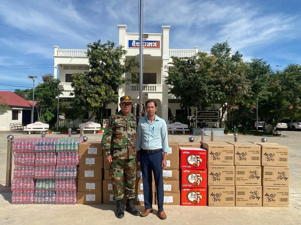 ភ្នំពេញ ៖ ឧត្តមសេនីយ៍ទោ ហ៊ុល សំអុន មេបញ្ជាការកងពលតូចដឹកជញ្ជូនលេខ៩៩ បានថ្លែងអំណរគុណយ៉ាងជ្រាលជ្រៅ ចំពោះឧកញ៉ា កែវ មុំ ប្រធានក្រុមប្រឹក្សាភិបាលក្រុមហ៊ុន លីលី ហ្វីដ អ៊ិនដាសទ្រី ខូ អិលធីឌី ដែលបានចាត់តាំងឲ្យក្រុមការងារ នាំយកនំព្រិល២០កេស នំអង្ករលីង៣៥កេស និងទឹកក្រូច៣០កេស ជូនដល់កងពលតូចដឹកជញ្ជូនលេខ៩៩ ៕