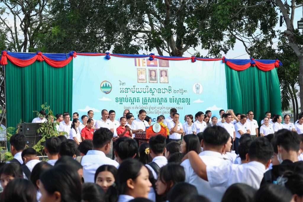 តាកែវ ៖ មហាជន មកពីគ្រប់មជ្ឈដ្ឋានប្រមាណជាង ១៥០០នាក់ ចូលរួមប្រារព្ធទិវាបរិស្ថានជាតិ ២៣វិច្ឆិកា ឆ្នាំ២០២៥ ក្រោមប្រធានបទ «ទម្លាប់ស្អាត គ្រួសារស្អាត បរិស្ថានល្អ» នៅខេត្តតាកែវ នាថ្ងៃទី២៥ ខែវិច្ឆិកា ឆ្នាំ២០២៥។