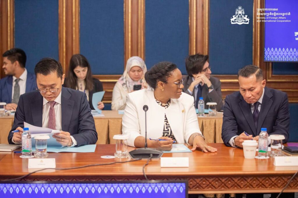 ភ្នំពេញ ៖ លោកស្រី អ៊ាត សោភា រដ្ឋលេខាធិការប្រចាំការ នៃក្រសួងការបរទេសខ្មែរ នៅរសៀលថ្ងៃទី២៥ ខែវិច្ឆិកា ឆ្នាំ២០២៥ បានដឹកនាំការធ្វើបទបង្ហាញ ជូនសមាជិកនៃអង្គទូត និងអង្គការអន្តរជាតិប្រចាំកម្ពុជា អំពីលទ្ធផលនៃការស៊ើបអង្កេតបឋមលើព្រឹត្តិការណ៍បាញ់ ប្រហារដោយកងកម្លាំងថៃ មកលើប្រជាជនស៊ីវិលកម្ពុជា នៅភូមិព្រៃចាន់ ខេត្តបន្ទាយមានជ័យ កាលពីថ្ងៃទី១២ ខែវិច្ឆិកា ឆ្នាំ២០២៥ ។