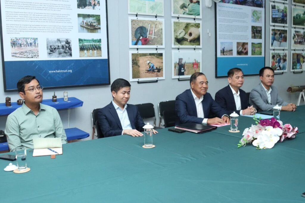 ភ្នំពេញ ៖ លោកបណ្ឌិត លី ធុជ ទេសរដ្ឋមន្រ្តី និងជាអនុប្រធានទី១ អាជ្ញាធរមីន បានទទួលស្តាប់នូវសេចក្តីរាយការណ៍របស់អង្គការ Halo Trust អំពីលទ្ធផលសម្រេចបានក្នុងឆ្នាំ២០២៥ និងផែនការបន្តសម្រាប់ឆ្នាំ២០២៦ នាថ្ងៃទី២៦ ខែវិច្ឆិកា ឆ្នាំ២០២៥ នៅទីស្នាក់ការអង្គការ Halo Trust ខេត្តសៀមរាប ។