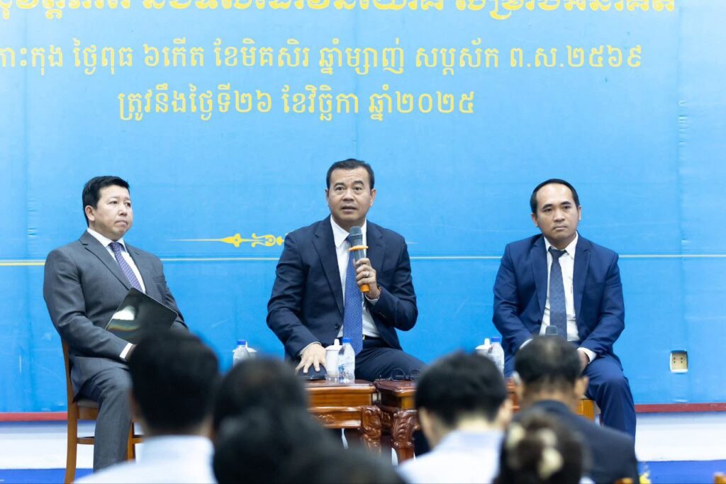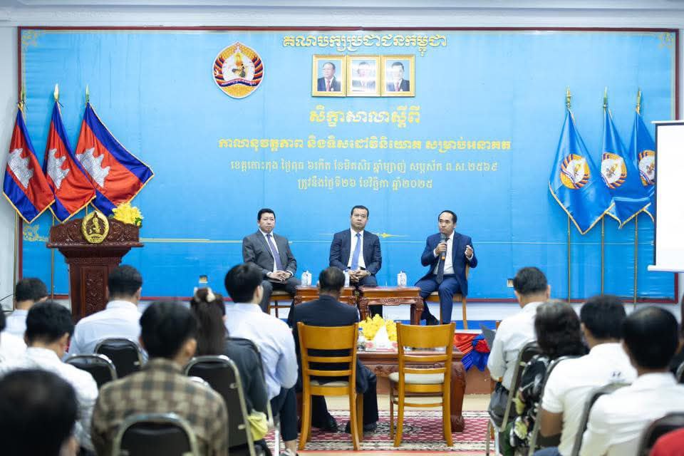 កោះកុង ៖ លោកបណ្ឌិត កៅ ថាច ប្រតិភូរាជរដ្ឋាភិបាល ទទួលបន្ទុកជាអគ្គនាយកធនាគារ អភិវឌ្ឍន៍ជនបទ និងកសិកម្ម ជាសមាជិកគណៈកម្មាធិការកណ្តាល និងជាសមាជិកយុវជន គណបក្សថ្នាក់កណ្តាល បានអញ្ជើញបើកសិក្ខាសាលា និងធ្វើជាវាគ្មិនស្តីពីកាលានុវត្តភាព និងទិសដៅវិនិយោគសម្រាប់អនាគត នៅថ្ងៃទី២៦ ខែវិច្ឆិកា ឆ្នាំ២០២៥។