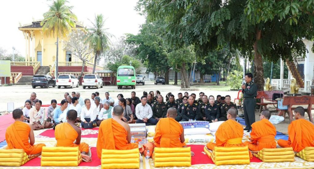 កំពង់ធំ៖ នៅព្រឹកថ្ងៃទី២៨ ខែវិច្ឆិកា ឆ្នាំ២០២៥ ឧត្ដមសេនីយ៍ទោ សោម ស៊ុន មេបញ្ជាការ តំបន់ប្រតិបត្តិការសឹករងកំពង់ធំ បានដឹកនាំសហការី នាំយកថវិកា និងទេយ្យទាន ទៅប្រគេនព្រះសង្ឃដែលមានការខ្វះខាតចង្ហាន់ប្រចាំថ្ងៃ នៅវត្តក្តីអណ្ដែត សង្កាត់ស្រយ៉ូវ ក្រុងស្ទឹងសែន ខេត្តកំពង់ធំ និងដោយមានការចូលរួមពីលោកយាយ លោកតាគណៈកម្មការអាចារ្យវត្តជាច្រើនរូបផងដែរ ។