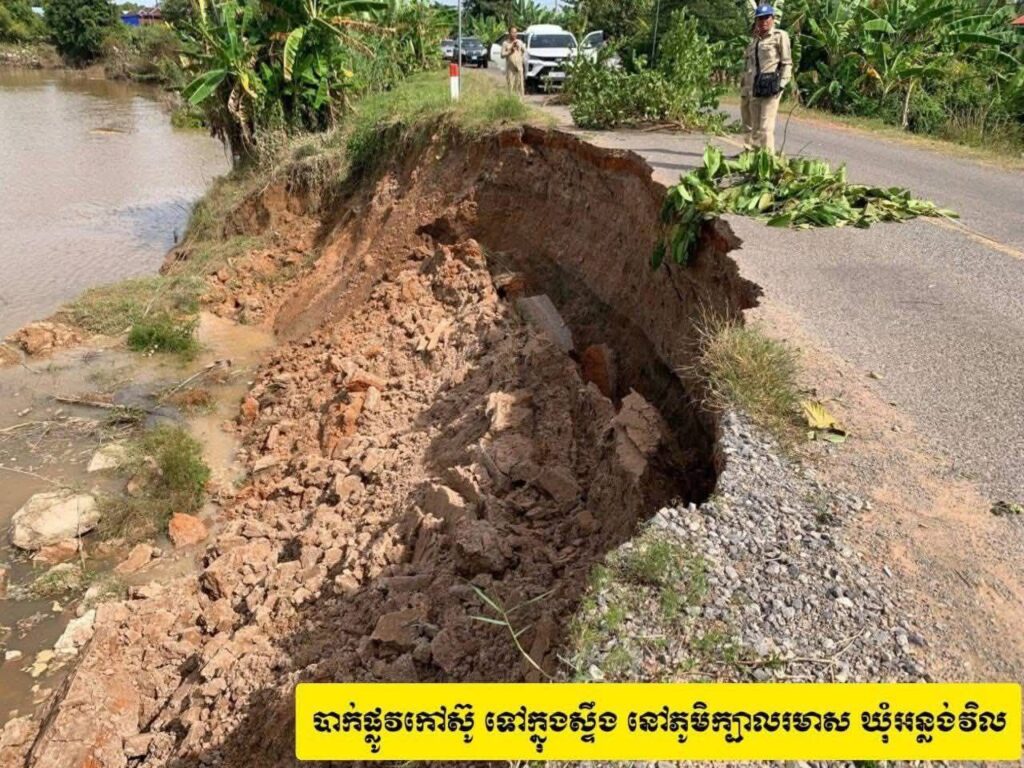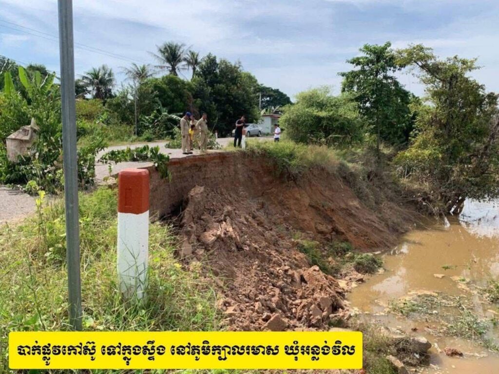 រដ្ឋបាលស្រុកកណ្តៀង ចេញសេចក្តីជូនដំណឹងស្តីពីការបាក់ច្រាំងស្ទឹង ២កន្លែងដោយសារគ្រោះទឹកជំនន់