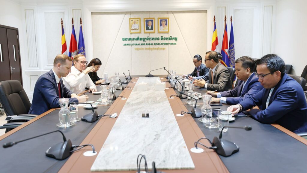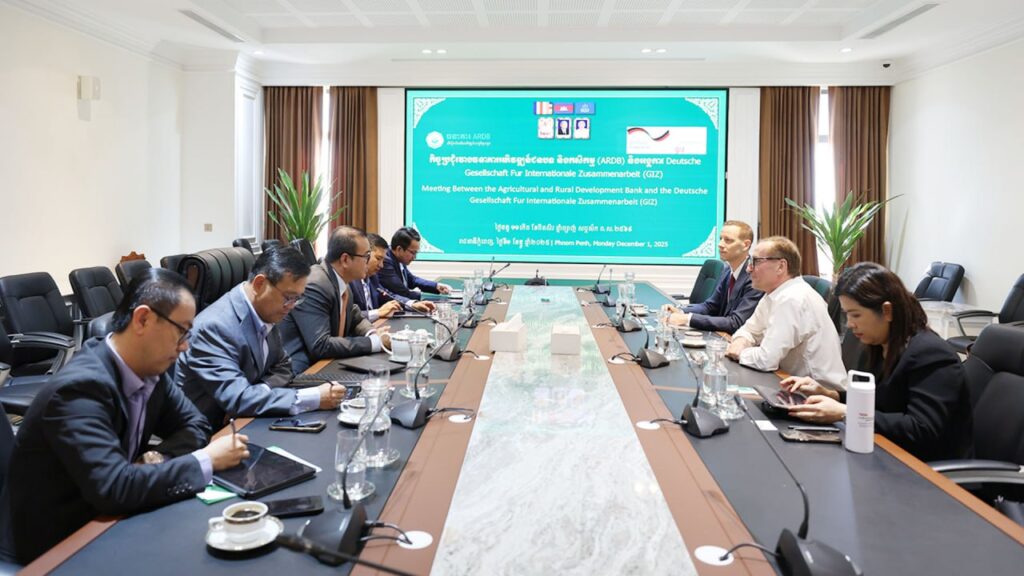 ភ្នំពេញ៖ នាថ្ងៃទី១ ខែធ្នូ ឆ្នាំ២០២៥ លោកបណ្ឌិត កៅ ថាច ប្រតិភូរាជរដ្ឋាភិបាលទទួលបន្ទុកជាអគ្គនាយកធនាគារអភិវឌ្ឍន៍ជនបទ និងកសិកម្ម (ARDB) អមដោយសហការី បានទទួលជួបក្រុមការងារនៃ Deutsche Gesellschaft fur Internationale Zusammenarbeit (GIZ) ដើម្បីពិភាក្សាលើបទពិសោធន៍ និងការអនុវត្តរបស់ ARDB ពាក់ព័ន្ធនឹង Green Finance និង Taxonomies ក៏ដូចជាបញ្ហាប្រឈមនានា ព្រមទាំងស្វែងយល់ពីកាលានុវត្តភាពនៃកិច្ចសហការនាពេលអនាគត។