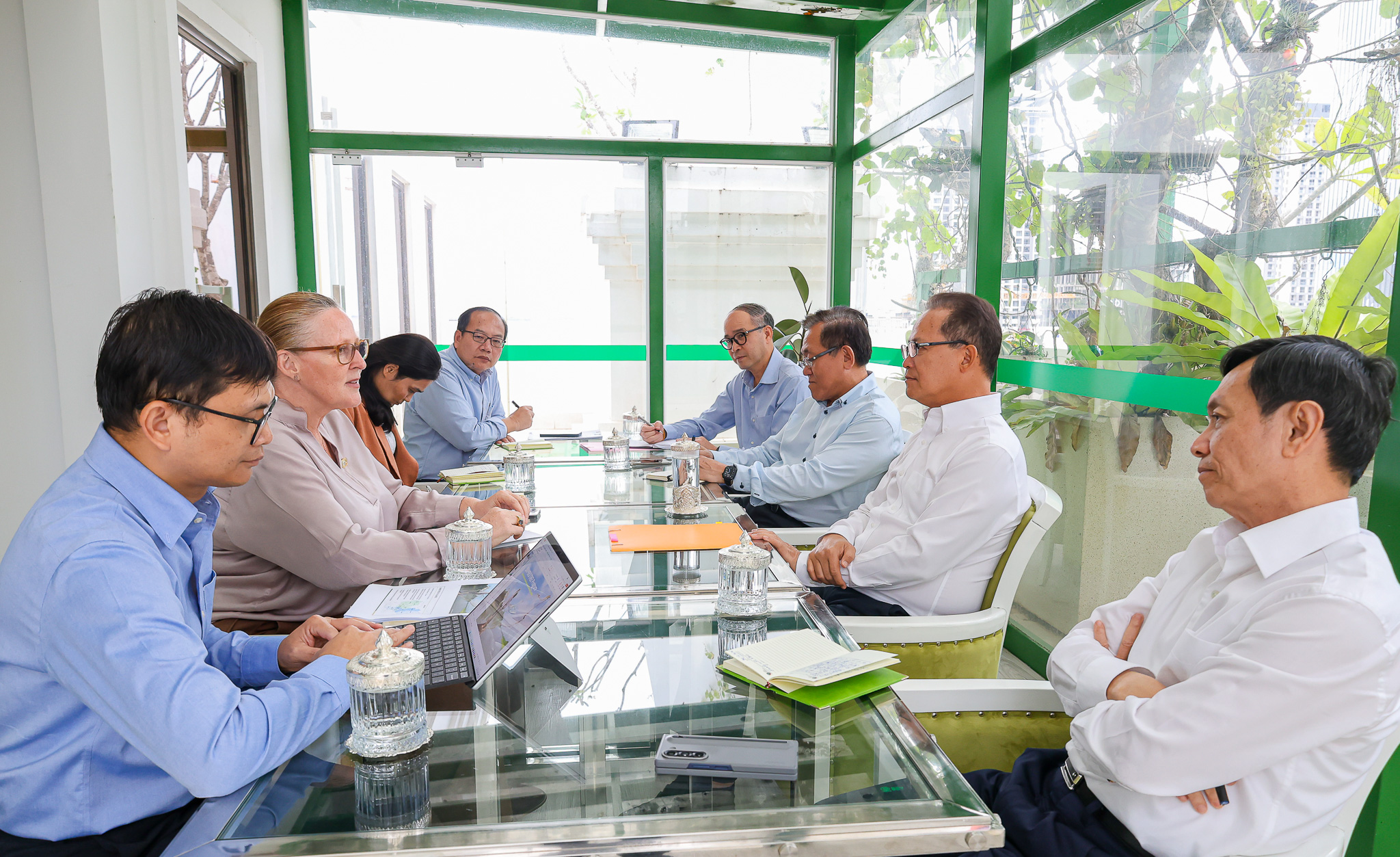 ភ្នំពេញ ៖ នៅរសៀលថ្ងៃទី៤ ខែធ្នូ ឆ្នាំ២០២៥ លោកបណ្ឌិត អ៊ាង សុផល្លែត រដ្ឋមន្រ្តីក្រសួងបរិស្ថាន បានទទួលជួបលោកស្រី Rebekah Bell តំណាងអង្គការ FAO ប្រចាំនៅកម្ពុជា ដើម្បីពិភាក្សាអំពី គម្រោងសម្បូរត្រី (SAMBO TRIEI Program)។