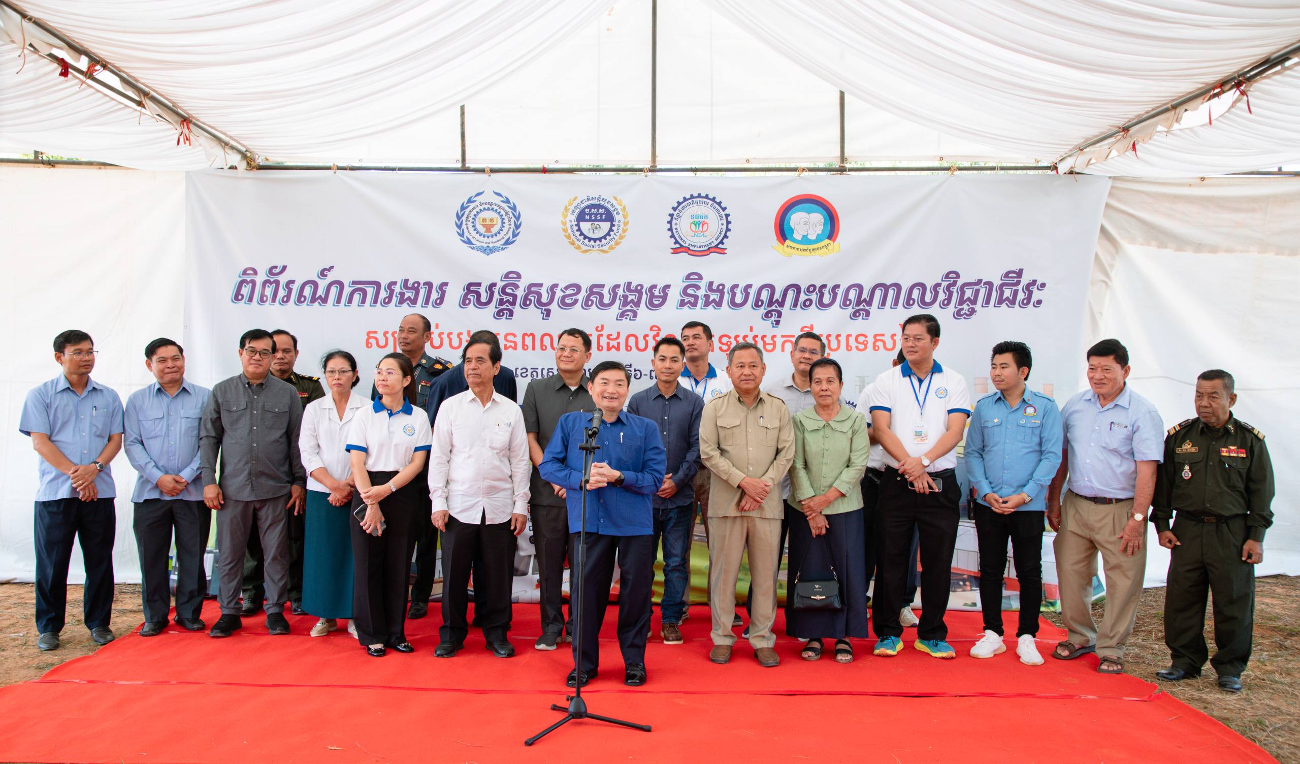 សៀមរាប៖ លោក ហេង សួរ រដ្ឋមន្ត្រីក្រសួងការងារ និងបណ្ដុះបណ្ដាលវិជ្ជាជីវៈ បានអញ្ជើញជាអធិបតីក្នុងពិព័រណ៍ការងារ សន្តិសុខសង្គម និងបណ្តុះបណ្តាលវិជ្ជាជីវៈ សម្រាប់បងប្អូនអតីតពលករដែលត្រឡប់មកពីប្រទេសថៃ ដោយនាំយកឱកាសការងារ ១២, ៦៧២កន្លែង និងព័ត៌មានស្តីពីអត្ថប្រយោជន៍នៃរបបសន្តិសុខសង្គម (ប.ស.ស.) និងការបណ្តុះបណ្តាលជំនាញបច្ចេកទេស និងវិជ្ជាជីវៈដោយឥតគិតថ្លៃ។