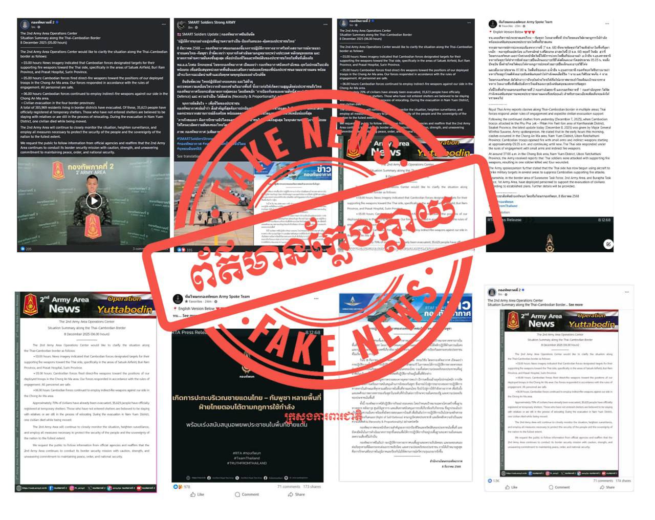 ភ្នំពេញ ៖ ក្រសួងព័ត៌មាន បានកត់សម្គាល់ឃើញថា ភាគីថៃបានផ្សព្វផ្សាយព័ត៌មានមិនពិត និងបំភ្លៃច្រើនជុំវិញស្ថានការណ៍នៅព្រំដែនកម្ពុជា-ថៃ ខណៈមានគណនីហ្វេសប៊ុកជាច្រើនដែលថៃបន្លំបង្កើតឡើងដោយដាក់ឈ្មោះខ្មែរ និងសរសេរជាអក្សរខ្មែរ ដើម្បីផ្សាយព័ត៌មានក្លែងក្លាយ បំភ្លៃ បំផ្លើស ដើម្បីញុះញង់ឱ្យកម្ពុជាតបត។