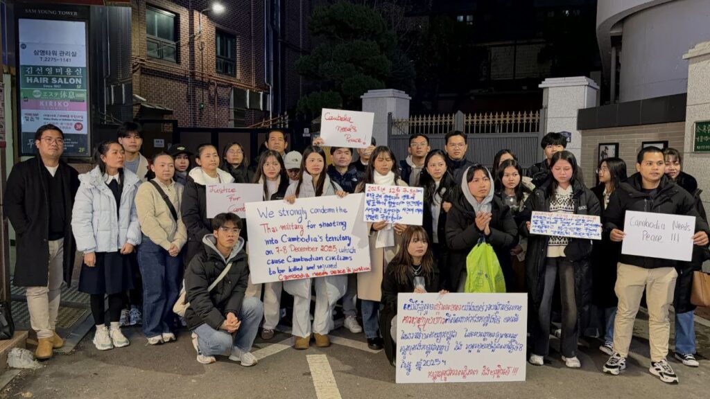 ក្រុមនិស្សិតខ្មែរ កំពុងសិក្សានៅប្រទេសកូរ៉េ ជួបជុំគ្នាថ្កោលទោស ចំពោះការបាញ់ប្រហារ ពីសំណាក់យោធាថៃ មកលើដែនអធិបតេយ្យកម្ពុជា