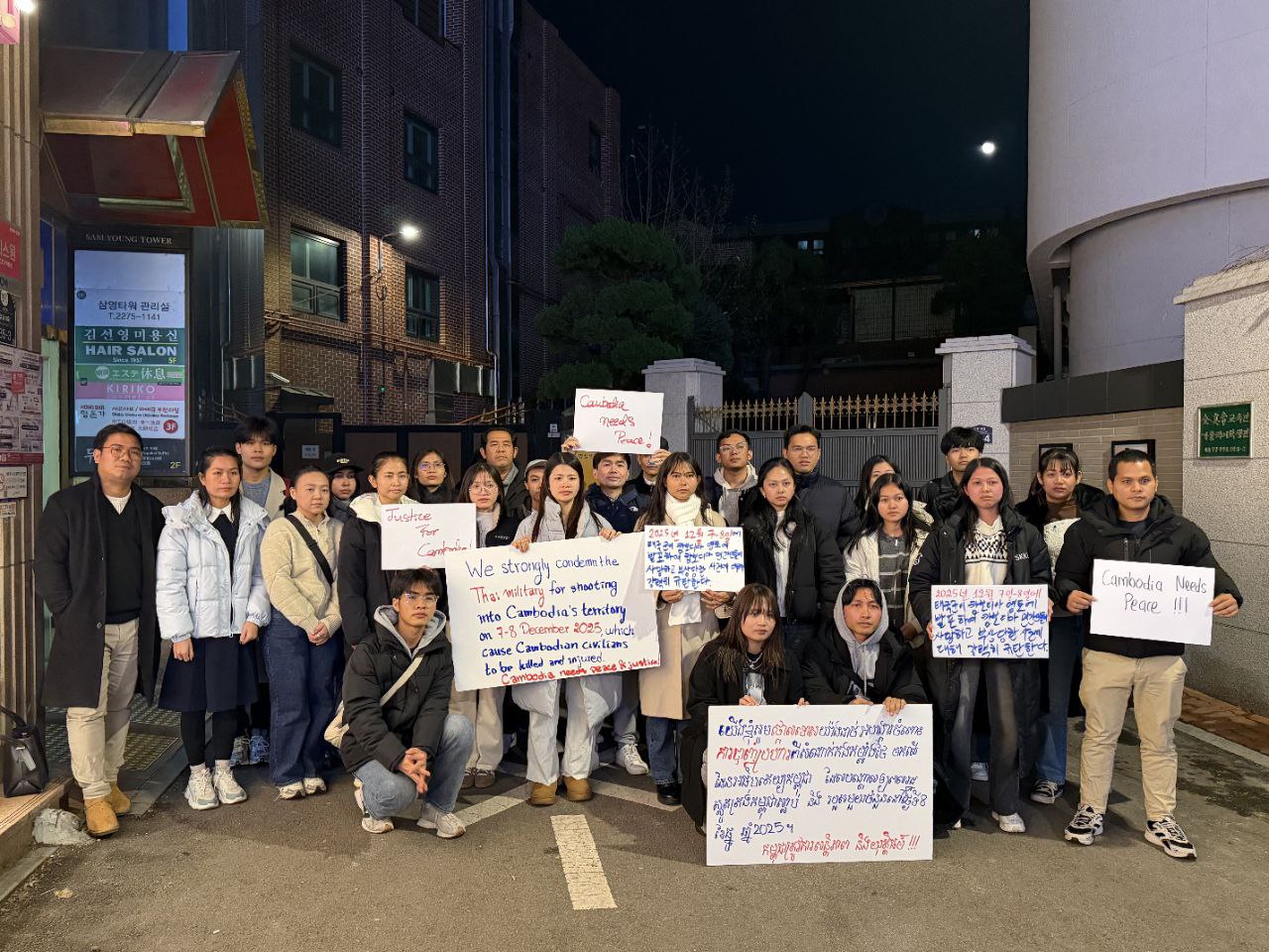 ក្រុមនិស្សិតខ្មែរ កំពុងសិក្សានៅប្រទេសកូរ៉េ ជួបជុំគ្នាថ្កោលទោស ចំពោះការបាញ់ប្រហារ ពីសំណាក់យោធាថៃ មកលើដែនអធិបតេយ្យកម្ពុជា