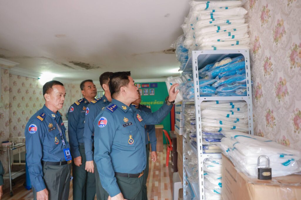លោក ម៉េង ស្រ៊ុន អញ្ជើញដឹកនាំមន្ត្រីជំនាញកងរាជអាវុធហត្ថ ចុះត្រួតពិនិត្យ ការិយាល័យសុខាភិបាល កន្លែងធ្វើការ កន្លែងស្នាក់នៅ កន្លែងហូបចុក ផ្ទះបាយ ក្នុងបញ្ជាការដ្ឋានកងរាជអាវុធហត្ថខេត្តកំពង់ស្ពឺ ដើម្បីត្រៀមទទួលនាយទាហានរងដែលបានបញ្ជប់វគ្គហ្វឹកហ្វឺន និងវិលចូលអង្គភាព
