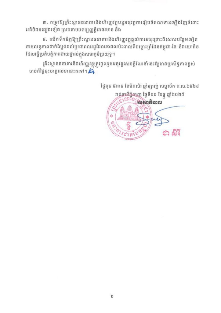ធនាគារជាតិ ណែនាំពីវិធានការជួយសម្រាលបន្ទុកដល់ពលរដ្ឋ រងផលប៉ះពាល់ពីជម្លោះព្រំដែន កម្ពុជា-ថៃ