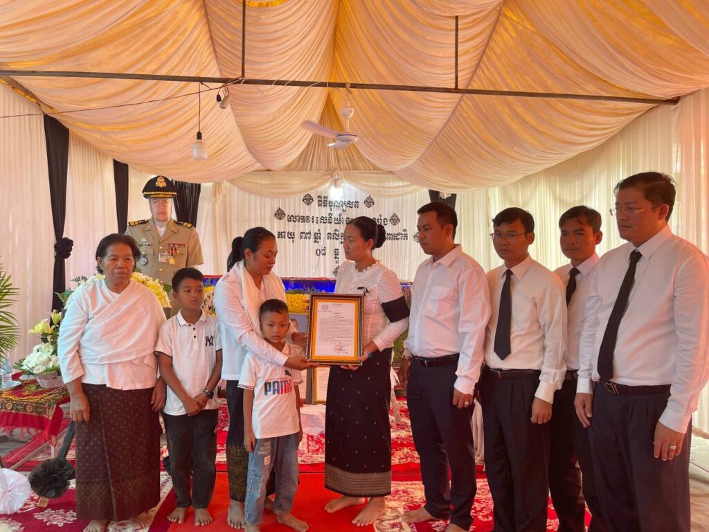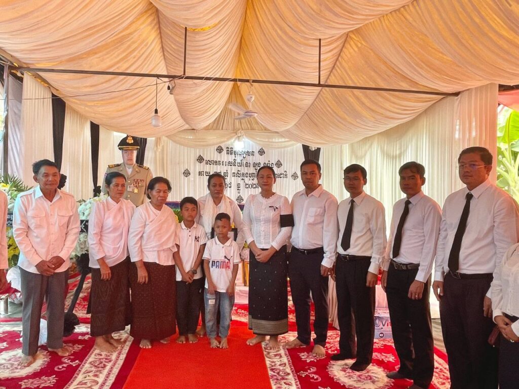 ឧត្តរមានជ័យ៖ លោកស្រី ឃ្លោក ប៉េងថុល អនុរដ្ឋលេខាធិការ តំណាងដ៏ខ្ពង់ខ្ពស់លោកហេង សួរ រដ្ឋមន្ត្រីក្រសួងការងារ និងបណ្ដុះបណ្ដាលវិជ្ជាជីវៈ នាព្រឹកថ្ងៃទី១០ ខែធ្នូ ឆ្នាំ២០២៥នេះ បានអញ្ជើញចូលរួមគោរពវិញ្ញាណក្ខន្ធសព លោកវរសេនីយ៍ទោ ឡុងឡាំង វីរនគរបាលជាតិ ដែលពលីជីវិតដោយសារការវាយប្រហាររបស់យោធាថៃ ក្នុងពេលឈរជើងការពារទឹកដីនៅទិសថ្មដូន ខេត្តឧត្តរមានជ័យ។