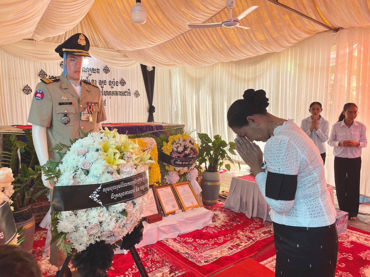 ឧត្តរមានជ័យ៖ លោកស្រី ឃ្លោក ប៉េងថុល អនុរដ្ឋលេខាធិការ តំណាងដ៏ខ្ពង់ខ្ពស់លោកហេង សួរ រដ្ឋមន្ត្រីក្រសួងការងារ និងបណ្ដុះបណ្ដាលវិជ្ជាជីវៈ នាព្រឹកថ្ងៃទី១០ ខែធ្នូ ឆ្នាំ២០២៥នេះ បានអញ្ជើញចូលរួមគោរពវិញ្ញាណក្ខន្ធសព លោកវរសេនីយ៍ទោ ឡុងឡាំង វីរនគរបាលជាតិ ដែលពលីជីវិតដោយសារការវាយប្រហាររបស់យោធាថៃ ក្នុងពេលឈរជើងការពារទឹកដីនៅទិសថ្មដូន ខេត្តឧត្តរមានជ័យ។