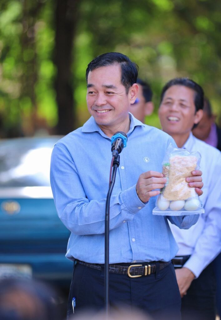 ក្នុងពេលសំណេះសំណាលនោះ លោកអភិបាលខេត្ត បានពាំនាំនូវប្រសាសន៍ផ្ដាំផ្ញើសួរសុខទុក្ខ ពីសម្តេចតេជោ-ធិបតី និងលោកសន្តិបណ្ឌិត នេត សាវឿន ជូនចំពោះ គ្រួសារវីរកងទ័ព និងបងប្អូនប្រជាពលរដ្ឋភៀសសឹក ដោយក្ដីនឹករលឹក និងអាណិតអាសូរជាទីបំផុត ក្នុងស្ថានភាពដែលតំបន់ព្រំដែន មានសភាពតានតឹងខ្លាំង បង្ខំអោយបងប្អូន ត្រូវចាកចោលលំនៅដ្ឋាន មួយរយ: ដើម្បីជំលៀសខ្លួនចេញមករកតំបន់ដែលធានាសន្តិសុខ សុវត្ថិភាព សម្រាប់ស្នាក់នៅជាបណ្តោះអាសន្នសិន។