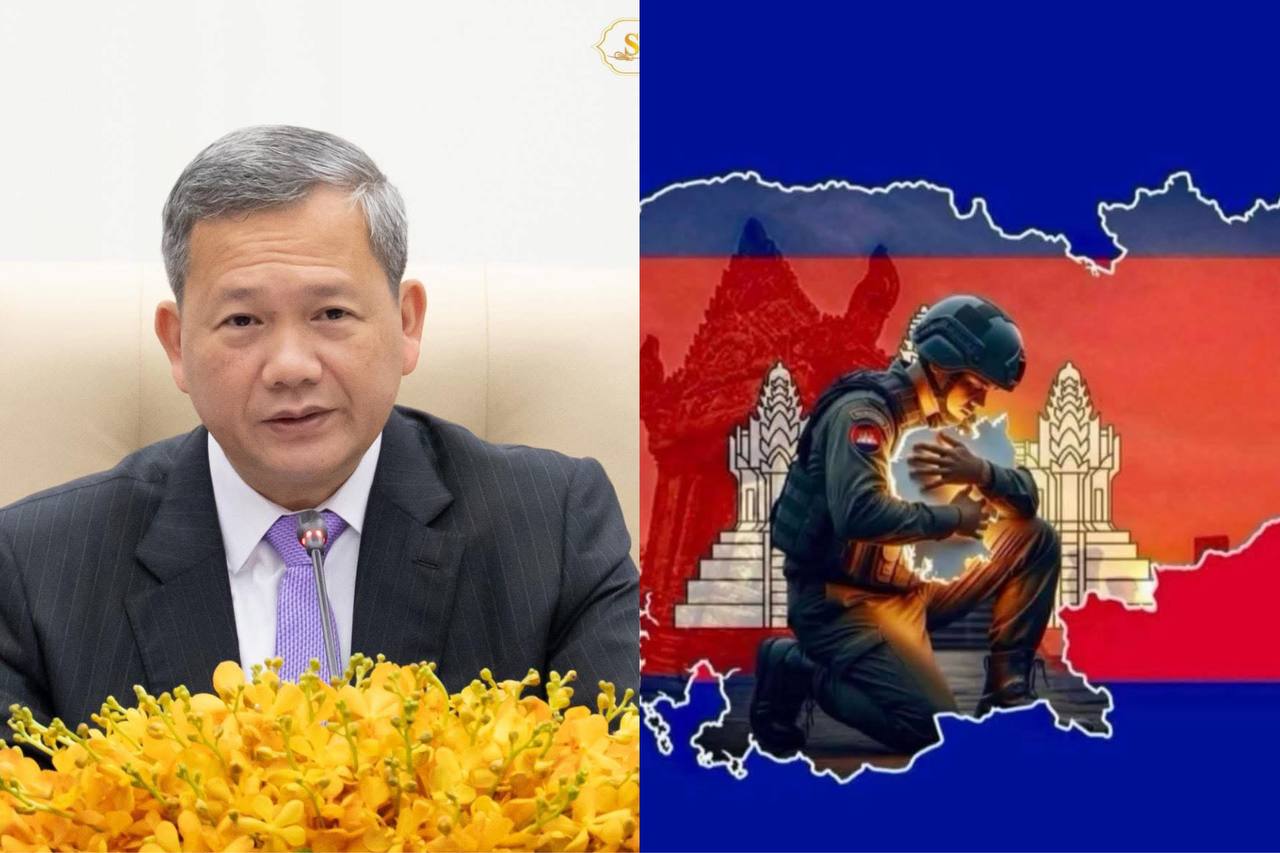 ភ្នំពេញ៖ សម្តេចធិបតី ហ៊ុន ម៉ាណែត នាយករដ្ឋមន្ត្រីនៃកម្ពុជា បានថ្លែងថា សូមឱ្យកម្លាំងមហាសាមគ្គីជាតិខ្មែរ នៅបន្តជាថាមពលរឹងមាំ សម្រាប់គាំទ្រ និងផ្ដល់កម្លាំងចិត្តដល់វីរៈកងទ័ព វីរៈនគរបាលជាតិរបស់យើង បន្តបេសកកម្មក្នុងការការពារទឹកដី។