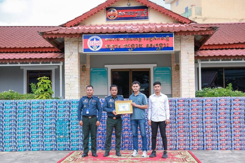 ក្រុមហ៊ុន ជីបម៉ុង បានឧបត្ថម្ភទឹកសុទ្ធកម្ពុជាចំនួន ៥០០កេស និងភេសជ្ជៈចំនួន ៣០០កេស ដល់បញ្ជាការដ្ឋានកងរាជអាវុធហត្ថខេត្តកំពង់ស្ពឺ