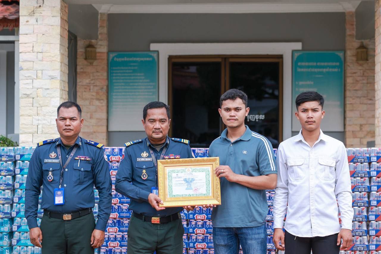 ក្រុមហ៊ុន ជីបម៉ុង បានឧបត្ថម្ភទឹកសុទ្ធកម្ពុជាចំនួន ៥០០កេស និងភេសជ្ជៈចំនួន ៣០០កេស ដល់បញ្ជាការដ្ឋានកងរាជអាវុធហត្ថខេត្តកំពង់ស្ពឺ