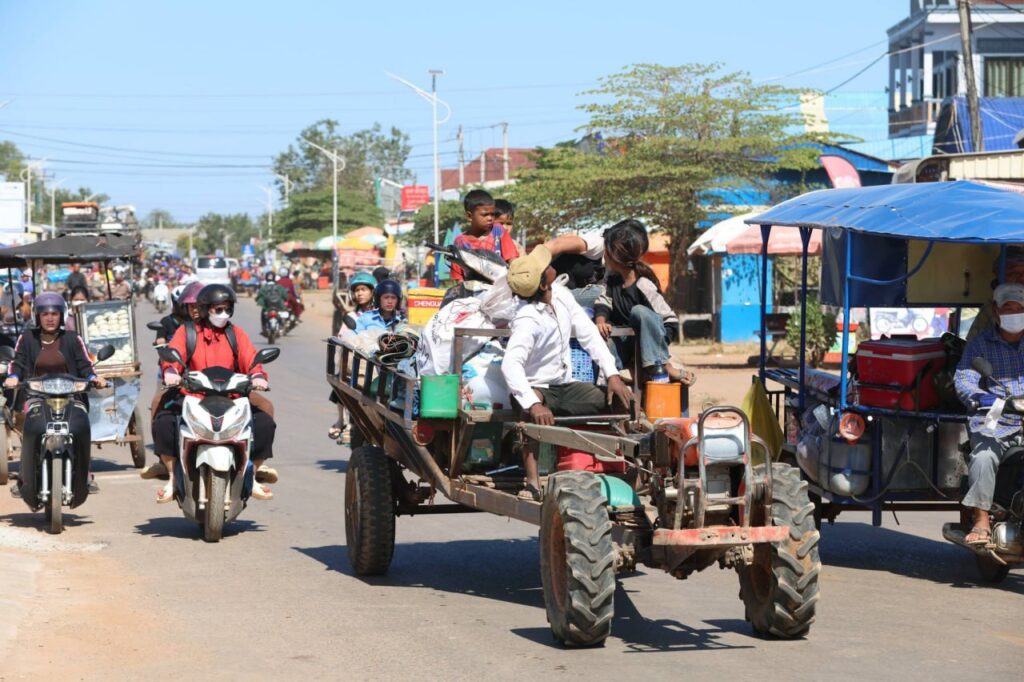 ពលរដ្ឋកំពុងសម្រុក ចាកចេញពីស្រុកស្រីស្នំ ក្រោយយោធាថៃ ប្រើយន្តហោះ F-16 ទម្លាក់គ្រាប់បែក