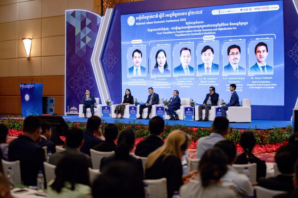 ភ្នំពេញ៖ ថ្លែងជាវាគ្មិនក្នុងកិច្ចពិភាក្សាពិសេសស្តីពី “ការធ្វើអន្តរកាលកម្លាំងពលកម្មកម្ពុជា ទៅរកសេដ្ឋកិច្ចឌីជីថល និងសេដ្ឋកិច្ចចក្រា” នៃសន្និសីទថ្នាក់ជាតិលើកទី២ ស្ដីពីសេដ្ឋកិច្ចការងារ ឆ្នាំ២០២៥ នៅព្រឹកថ្ងៃចន្ទ ទី១៥ ខែធ្នូ ឆ្នាំ២០២៥ លោក ហេង សួរ រដ្ឋមន្រ្តីក្រសួងការងារ និង បណ្តុះបណ្តាលវិជ្ជាជីវៈ បានលើកឡើងថា ការធ្វើអន្តរកាលកម្លាំង ពលកម្មកម្ពុជាទៅរកសេដ្ឋកិច្ចឌីជីថល និងសេដ្ឋកិច្ចចក្រា គឺជាការផ្លាស់ប្តូរ និងការអភិវឌ្ឍជំនាញ ការងារ និងរៀបចំរចនាសម្ព័ន្ធកម្លាំងពលកម្ម ដើម្បីឆ្លើយតបទៅនឹងបម្រែបម្រួល នៃរចនាសម្ព័ន្ធសេដ្ឋកិច្ចសម័យថ្មី ដែលផ្អែកលើបច្ចេកវិទ្យាឌីជីថល និងការប្រើប្រាស់ធនធាន ប្រកបដោយចីរភាព។