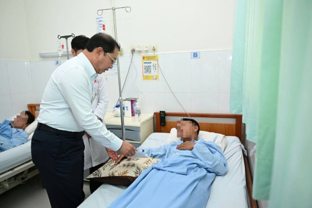 ភ្នំពេញ ៖ ក្នុងឱកាសបន្តអញ្ជើញ ចុះសួរសុខទុក្ខវីរកងទ័ព ដែលកំពុងសម្រាកព្យាបាលជំងឺ នៅមន្ទីរពេទ្យកាល់ម៉ែត នារសៀលថ្ងៃទី១៥ ខែធ្នូ ឆ្នាំ២០២៥ លោកសាស្រ្តាចារ្យ ឈាង រ៉ា រដ្ឋមន្រ្តីក្រសួង សុខាភិបាល បញ្ជាក់ជាថ្មី នូវការយកចិត្តទុកដាក់ខ្ពស់របស់ក្រសួង ក្នុងការធានាបាន នូវការសង្រ្គោះព្យាបាល វីរកងទ័ពជួរមុខ រងរបួសទាំងអស់ជាអាទិភាព ។